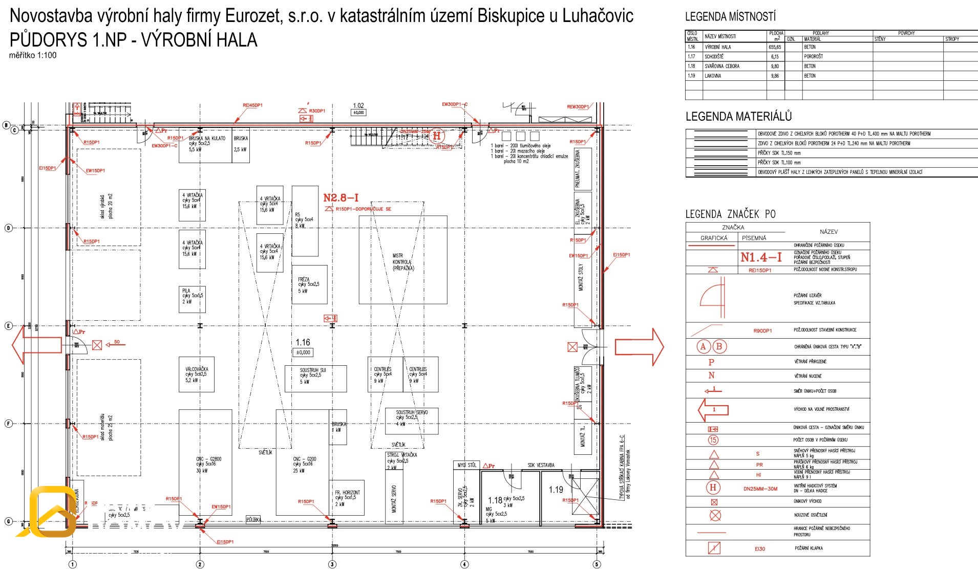 Projekt počítá s moderním výrobním zázemím doplněným o kanceláře, sociální zázemí a technické prostory.