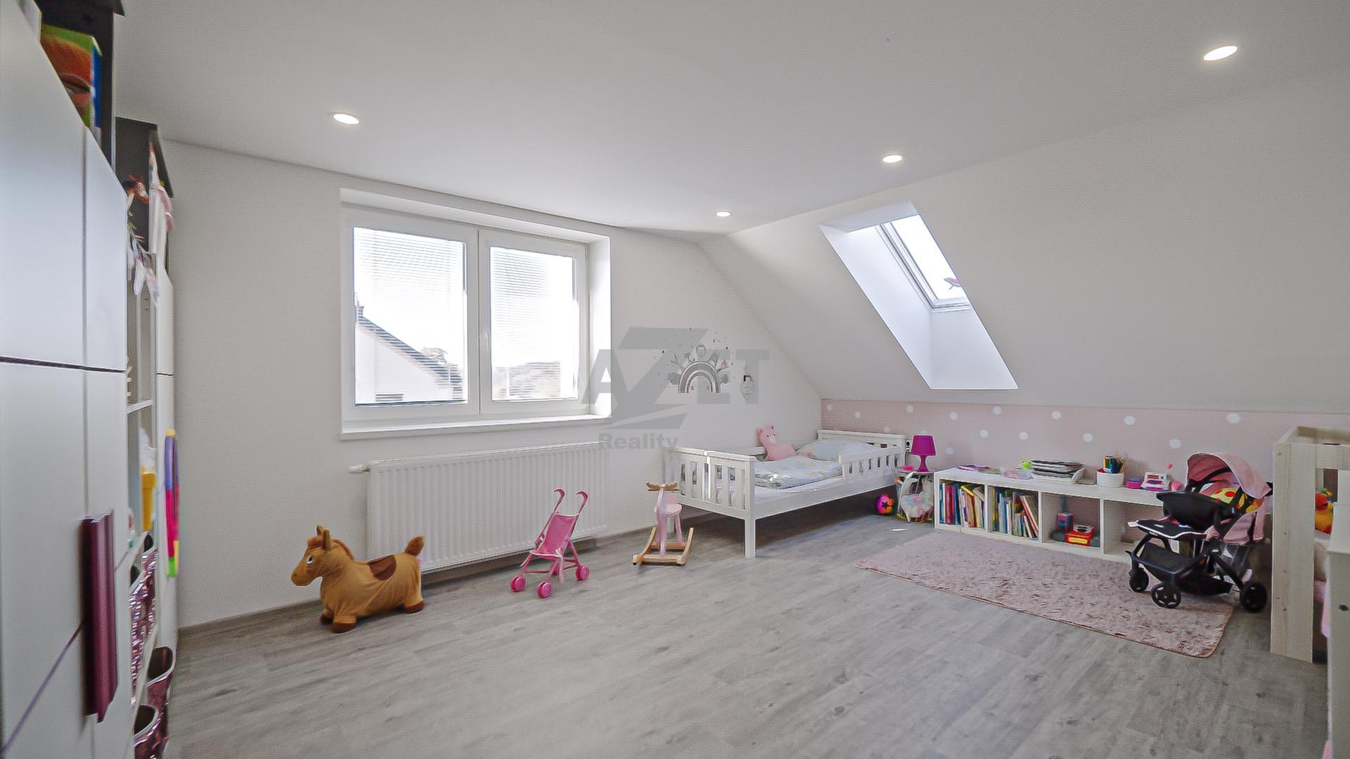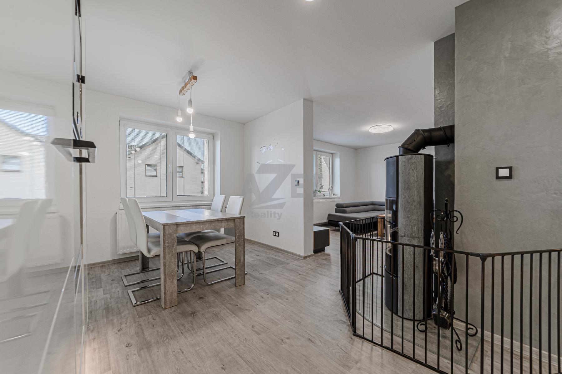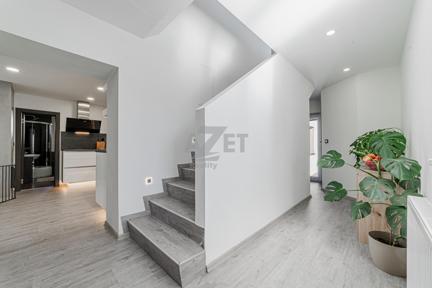 V přízemí vás přivítá světlá kuchyně s jídelnou propojená s obývacím pokojem, moderní koupelna s vanou a sprchovým koutem, praktická technická místnost a kotelna s přímým vstupem do garáže.