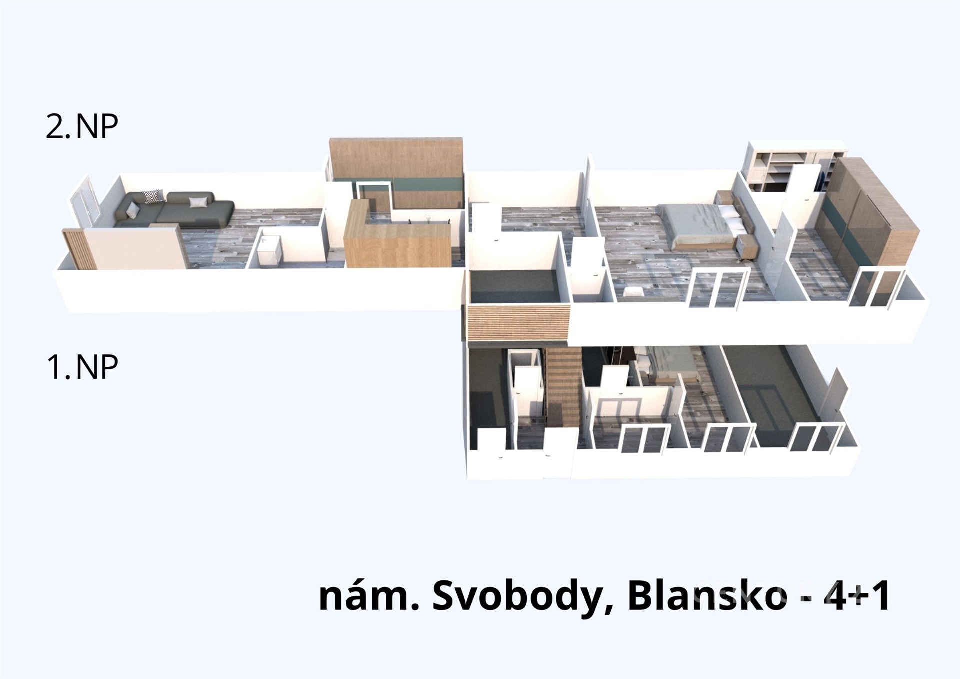 Prostorný dvoupodlažní byt 4+1 se zahradou, dílnou a garáží v centru Blanska