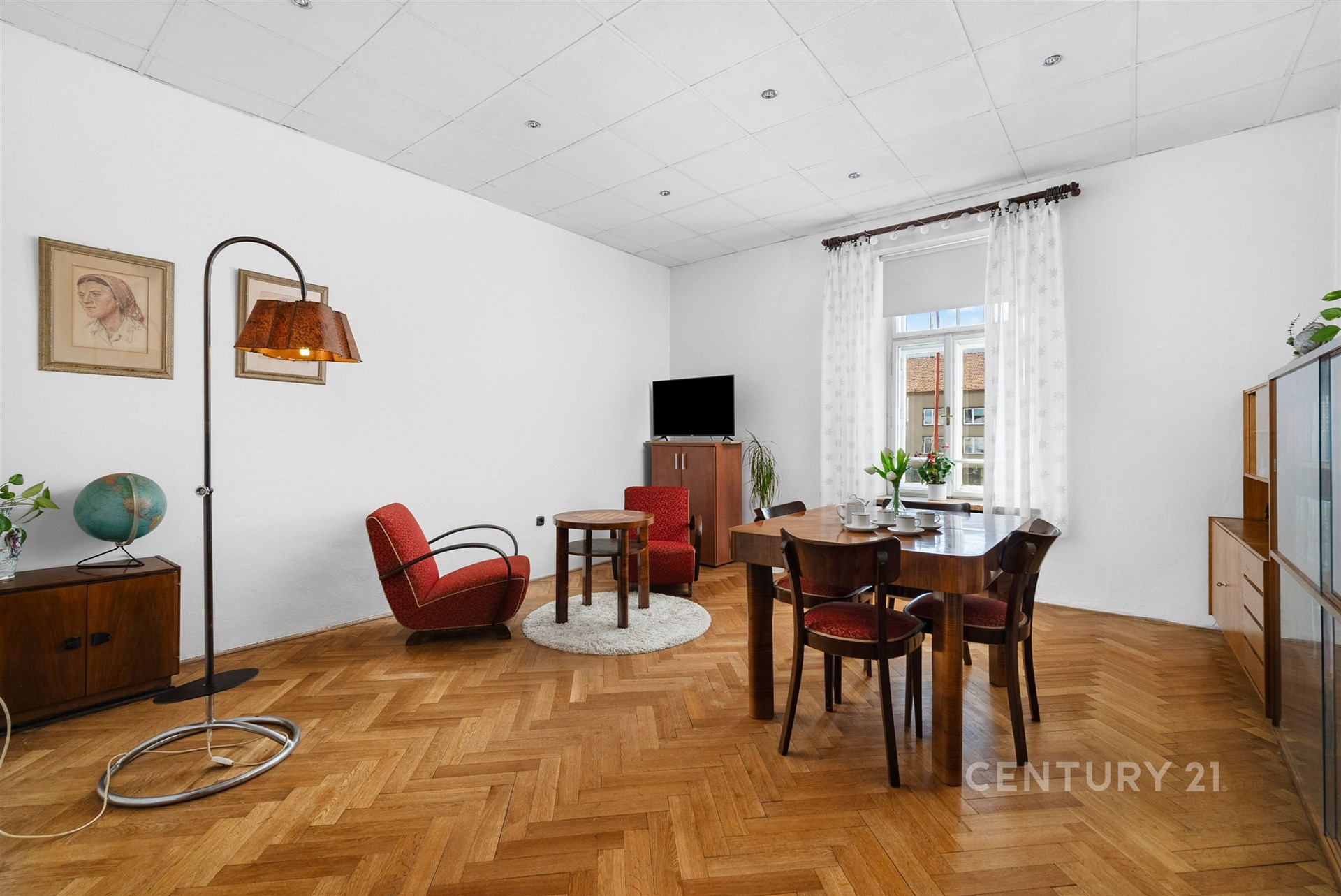 Byt si zachovává příjemnou atmosféru díky dobovým prvkům, jako jsou vestavěné skříně, prosklená vitrína, a nabízí také šatnu navazující na ložnici.