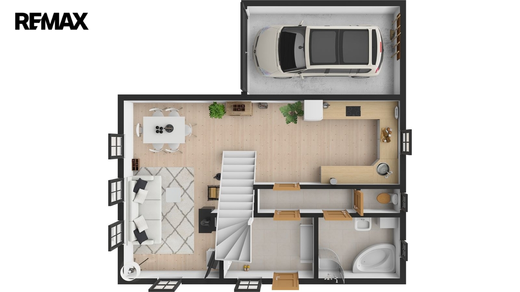 Tento dům je vybaven centrálním alarmem a připojením k internetu. K dispozici je také zahrada a přístup z místní komunikace. V suterénu najdete technickou místnost a kotelnu, v přízemí zádveří, koupelnu, toaletu, kuchyň, obývací pokoj a garáž s vlastním vstupem.