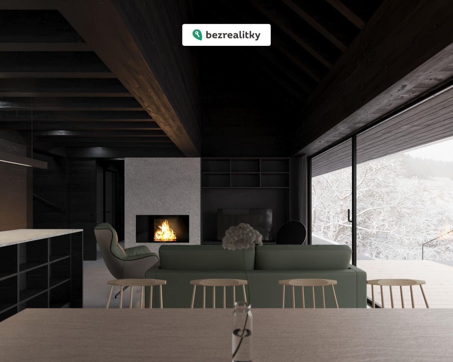 Díky kompaktnímu řešení je dům ideální pro rodinné bydlení i rekreační využití. Použité přírodní materiály, zejména dřevo, vytvářejí příjemnou a nadčasovou atmosféru.
