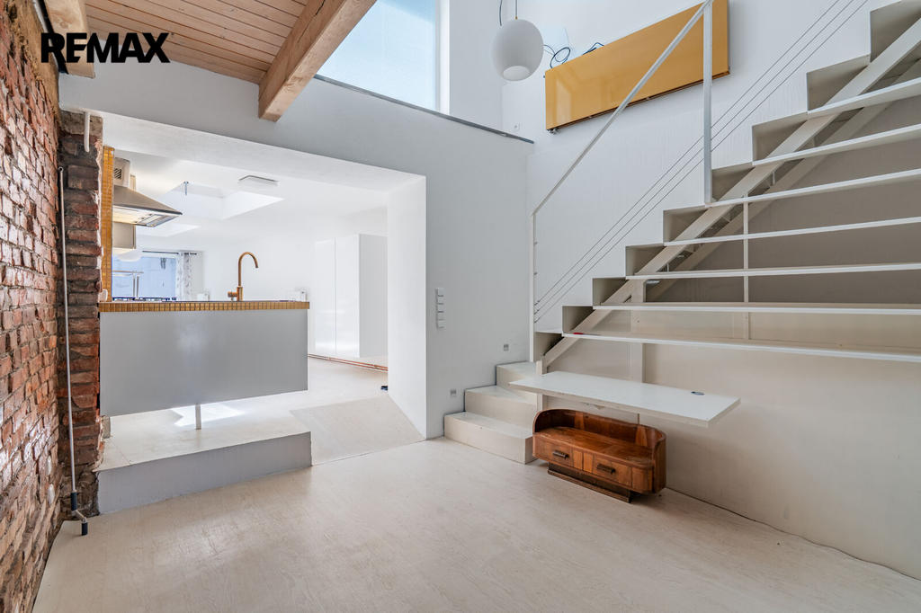 Řadový, patrový rodinný dům 2+kk s otevřenou dispozicí - loft, Blučina, ul. Komenského. Celková plocha pozemku 181 m2, užitná plocha domu cca 95 m2.