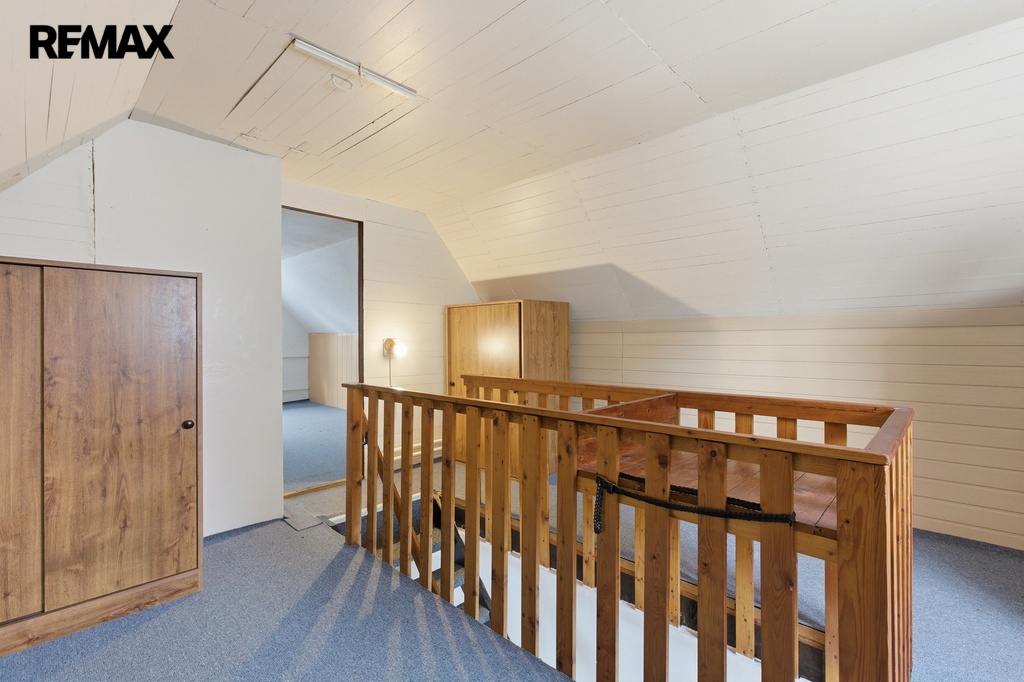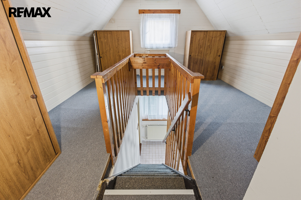 V patře se nachází jeden větší pokoj a menší mezipokoj. K dispozici je Vám také sklep, který se hodí pro uložení potravin nebo třeba i Vaší vinné sbírky.