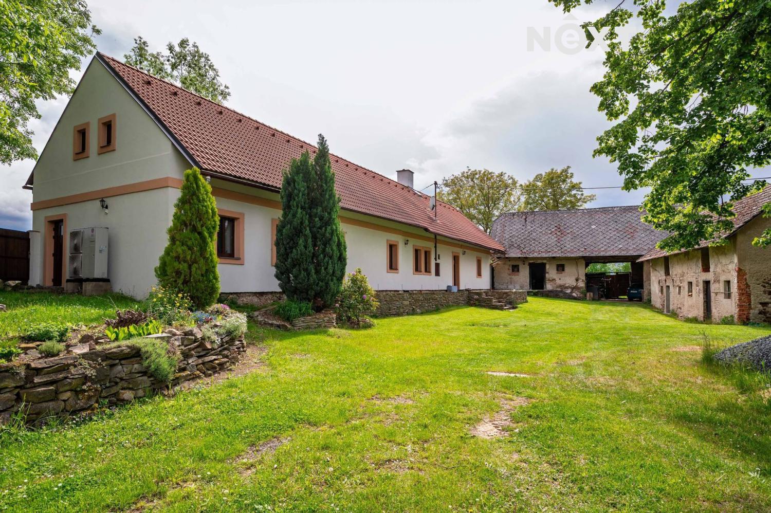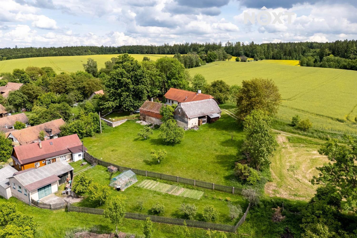 Pozemek má celkem 1 945 m² a kromě domu na něm najdete dvě stodoly (v původním, udržovaném stavu), malý sklípek a nově vybudované oplocení. Obě stodoly nabízí dostatek prostoru pro skladování, dílnu, nebo případnou přestavbu na ateliér či další zázemí.