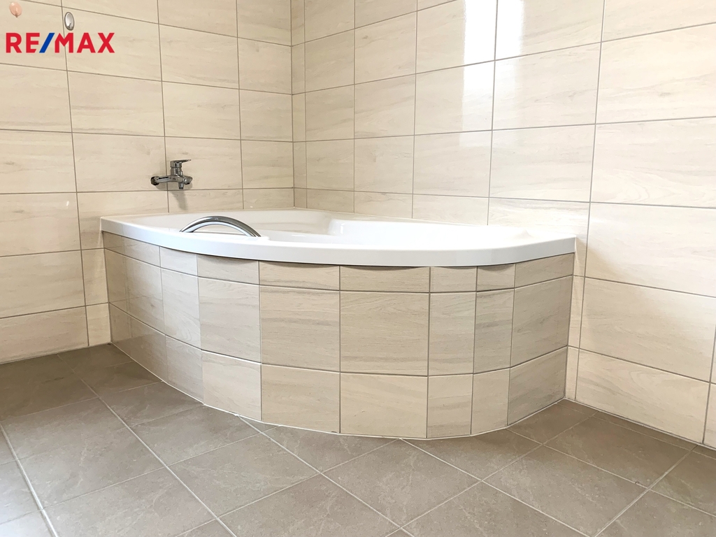 Zázemí domu tvoří moderní koupelna vybavená vanou i sprchovým koutem, samostatná toaleta a technická místnost, kde je umístěno tepelné čerpadlo. Velkou výhodou je prostorná garáž, která je součástí domu a umožňuje pohodlný "suchý" vstup přímo do obytné části, což oceníte zejména v zimních měsících.