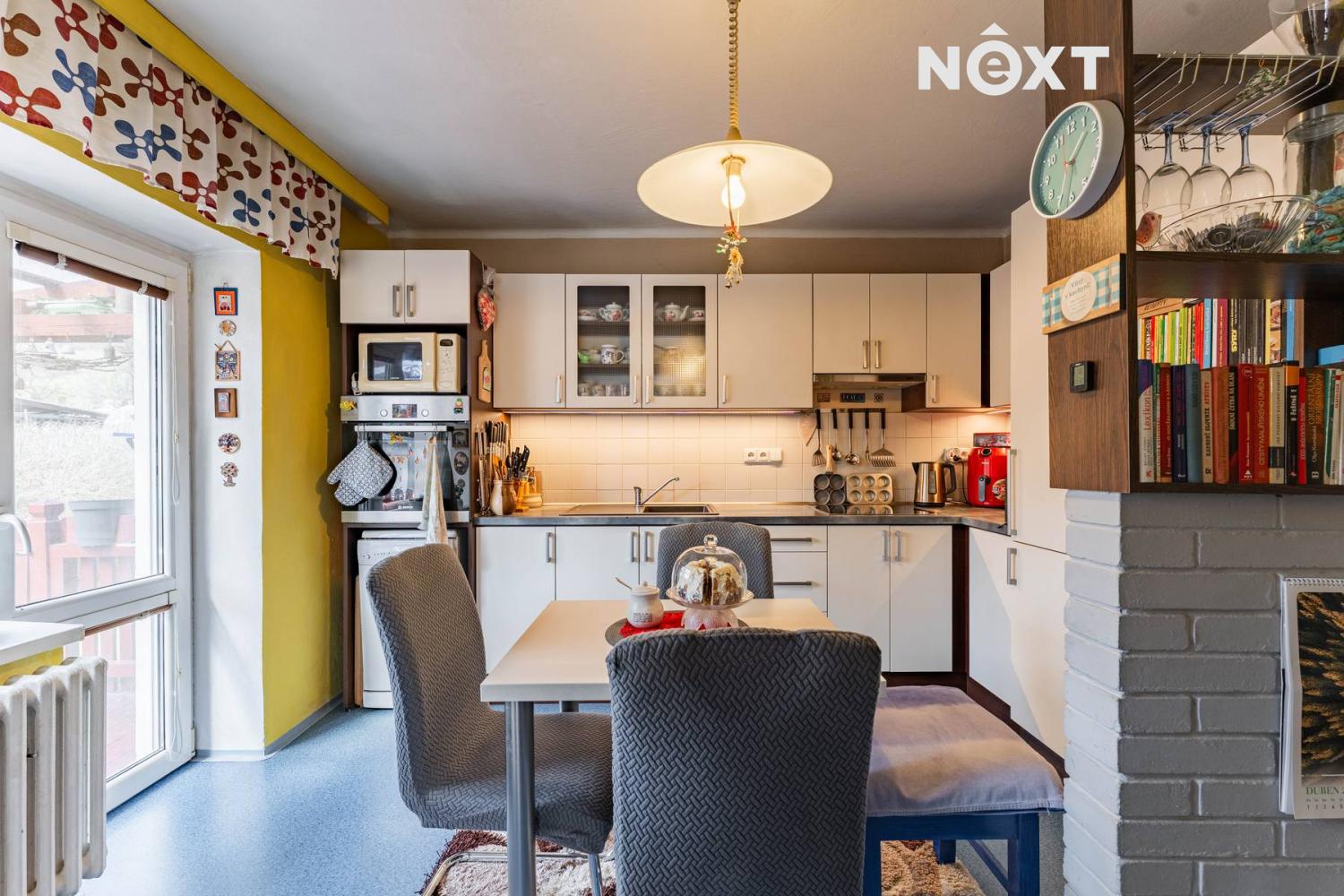 Horní patro pak nabízí další dva pokoje, kuchyni a koupelnu. Aktuálně je v původním stavu, což ale otevírá ideální příležitost vytvořit si prostor přesně podle vlastních představ. Může zde vzniknout další bytová jednotka, pracovna, ateliér, posilovna nebo prostor pro hosty.