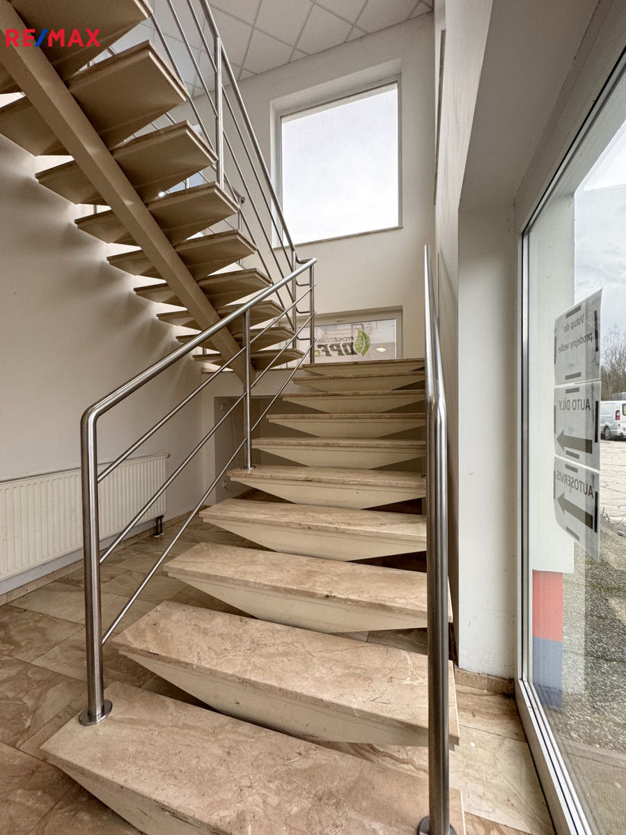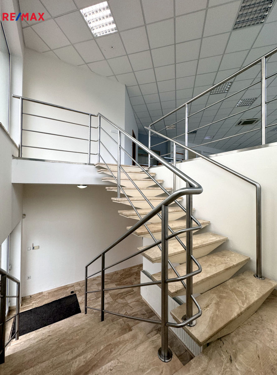 Nabízená nemovitost je samostatně uzamykatelná a zabezpečená. V patře vás osloví otevřený prostor, showroom se zázemím kuchyňky s pultem a přípravou pro osvětlené regály. V zázemí jsou k dispozici také dvě oddělená WC. Mimo nabízeného velkoprostoru jsou zde tři oddělené kanceláře s odlišnou výměrou.