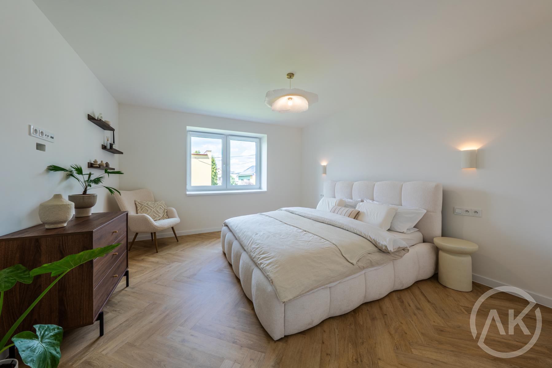 Tenhle byt vzniknul v rodinném domě, který prošel v roce 2025 kompletní a sakra nákladnou rekonstrukcí, kdy nezůstal kámen na kameni. Byty jsou tu jen dva a to v nejvyšším standardu, který mi dával smysl.