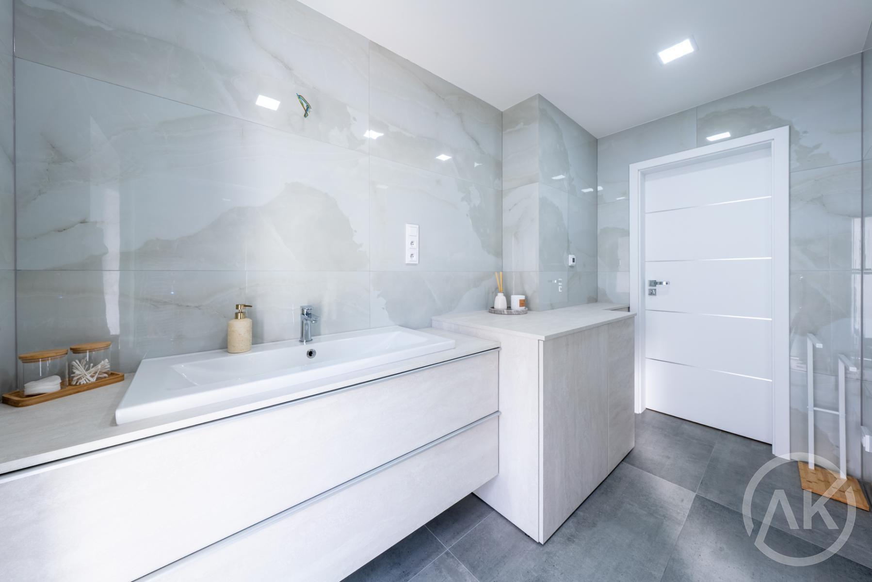 - neuvěřitelnou koupelnu, velkoformátový obklad, kamenické rohy, podomítkové baterie ve sprše a na záchodě i na prcku a shoz do prádelny, která se do plochy bytu nepočítá, ale máš ji plně k dispozici ve sklepě,