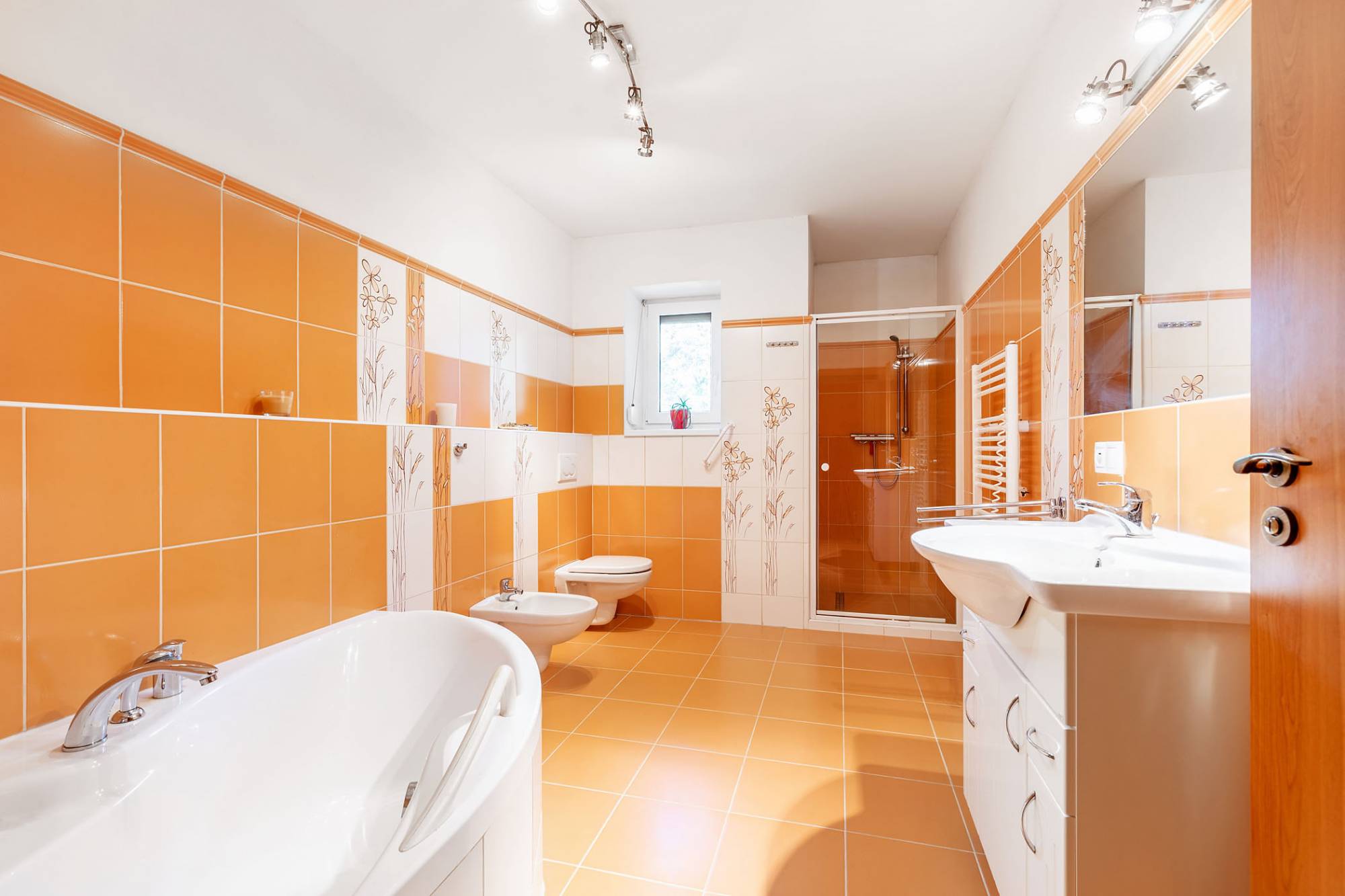 2× toaleta, vana, sprchový kout, bidet