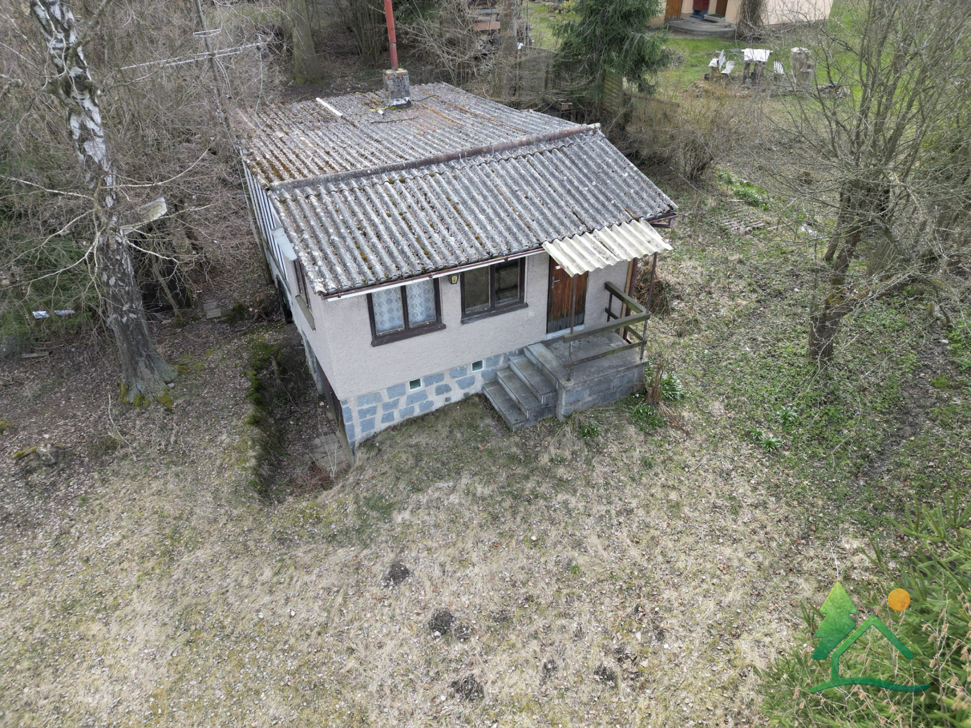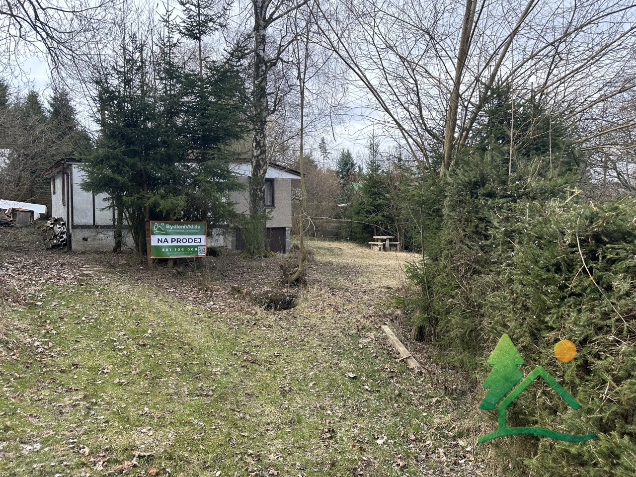 Součástí pozemku je chata určena ke kompletní rekonstrukci či demolici.