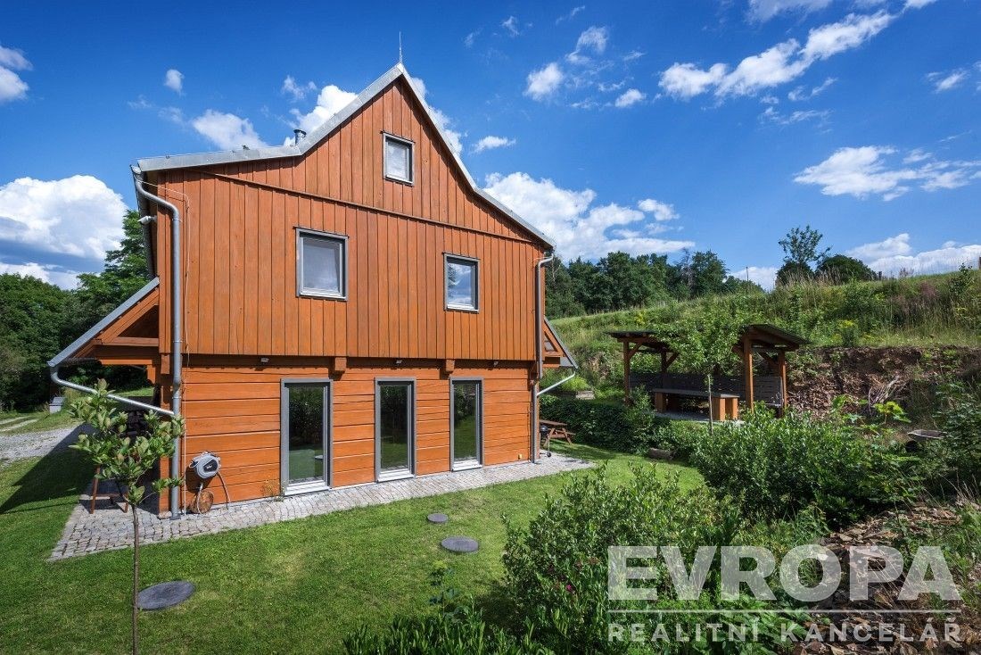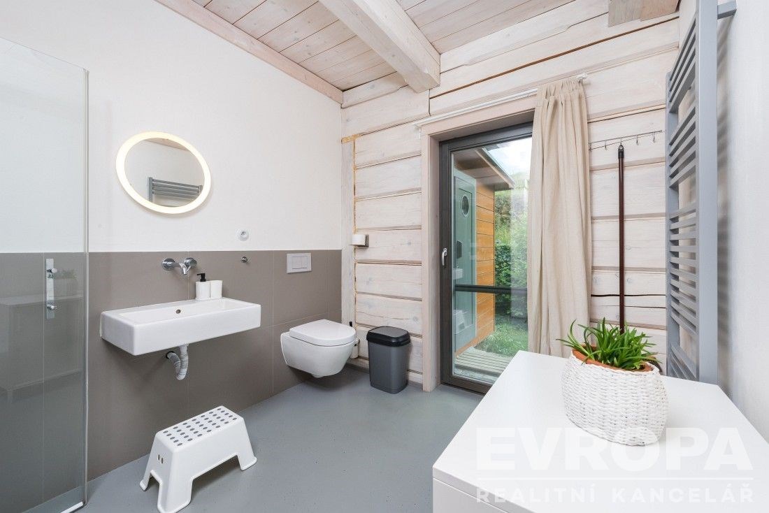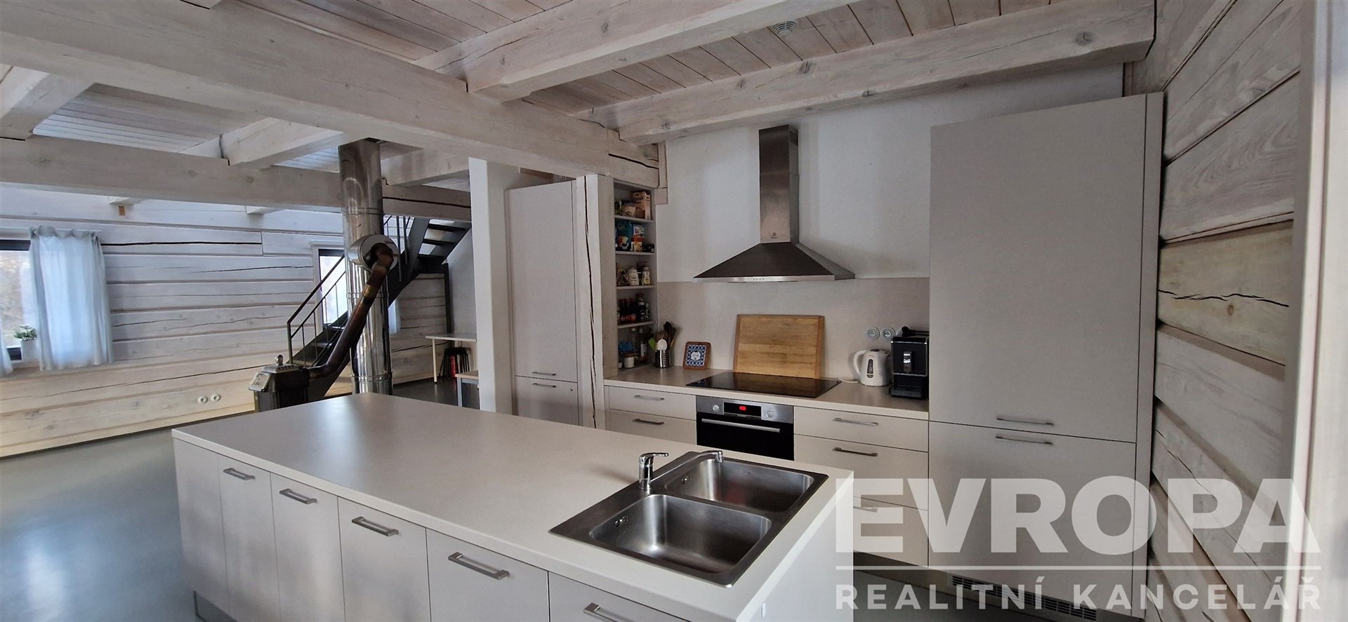 Interiér, který vás nadechne Srdcem domu je poctivá masivní stavba z roubených stěn s vnitřní izolací, která zajišťuje dokonalé klima v každém ročním období. Dispozice je navržena pro maximální komfort a soukromí: