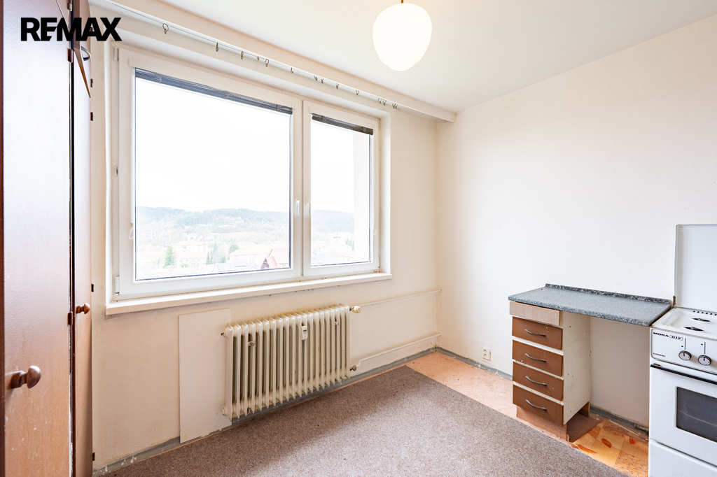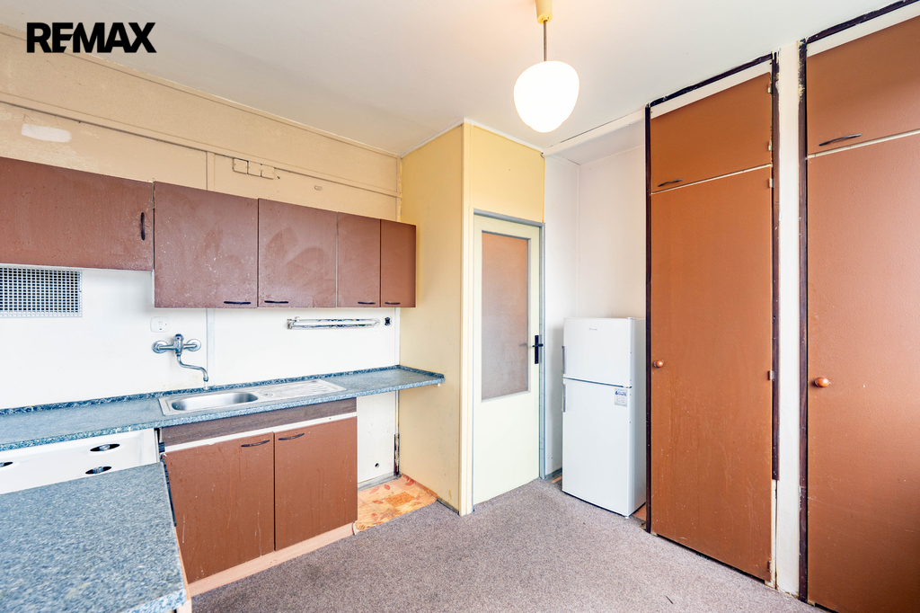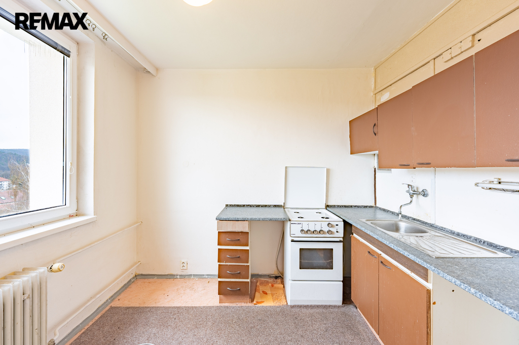Byt má praktické uspořádání – samostatnou kuchyni, obytný pokoj, koupelnu s WC a předsíň. Je v původním stavu, což nabízí ideální příležitost k rekonstrukci dle vlastních představ.