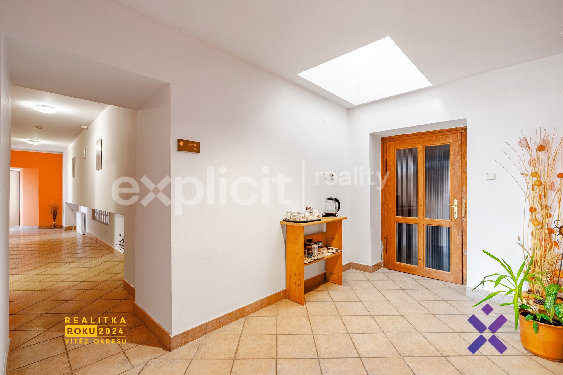 V horním patře se nachází čtyři vybavené samostatné pokoje, každý s vlastní koupelnou a toaletou. Tyto pokoje v současné době slouží jako penzion a poskytují stabilní příjem z krátkodobých i dlouhodobých pronájmů. Kromě toho je zde také kompletně vybavený byt, který může sloužit jako zázemí pro majitele nebo další možnost pronájmu.