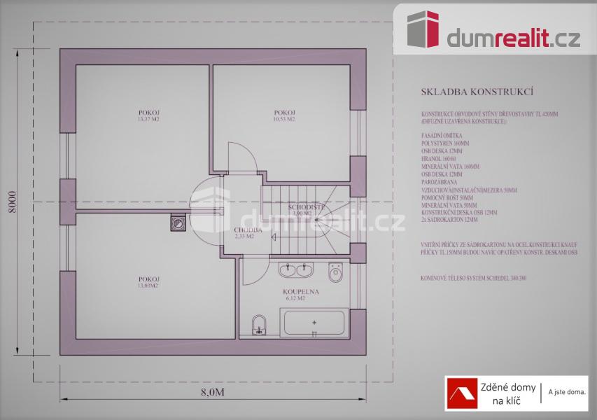 | Poznámka: | Cena včetně stavby domu na klíč, pozemku a DPH. |