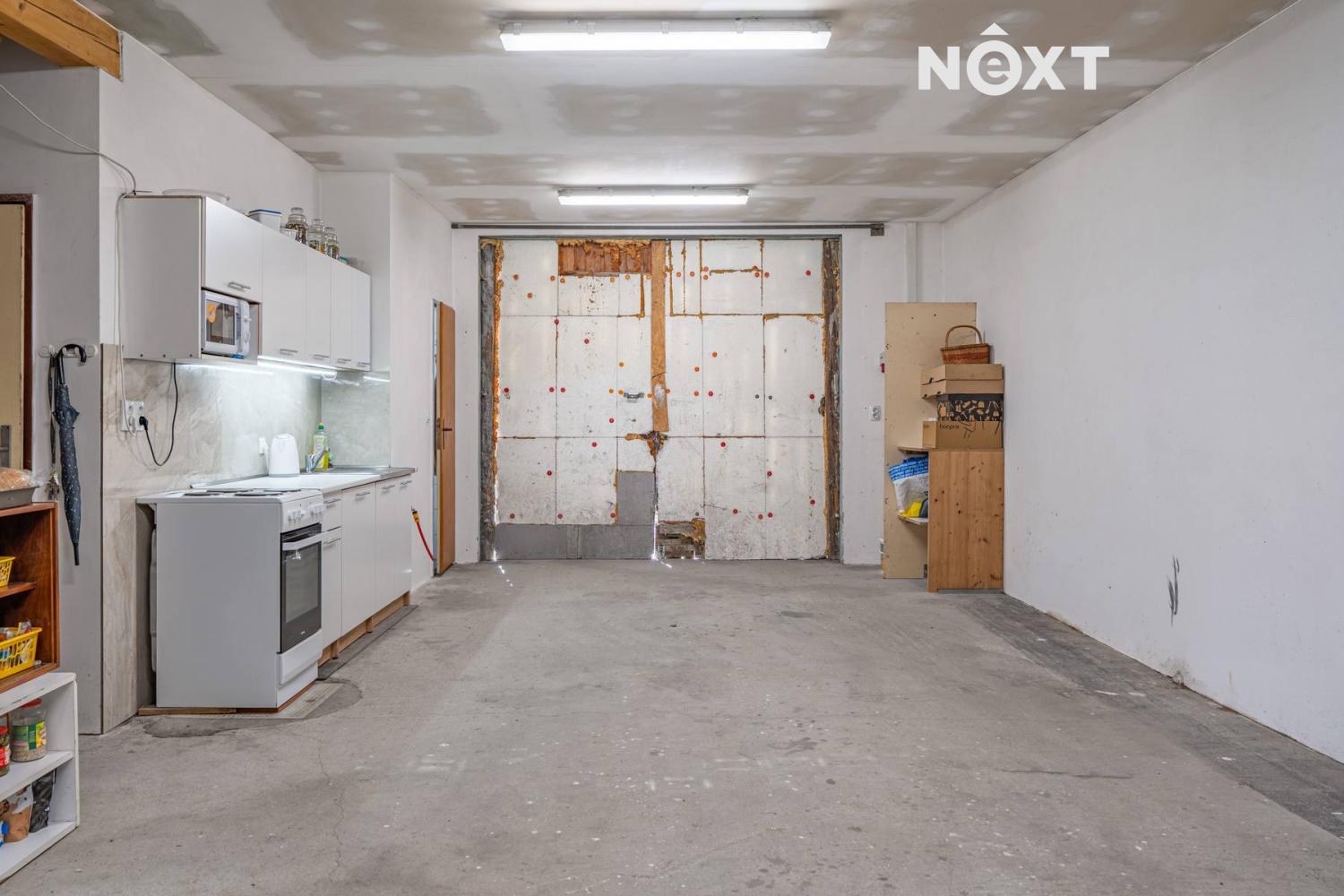 Součástí domu je prostorná hala o výměře 90 m² s vysokým stropem, která představuje mimořádnou příležitost pro autoservis, dílnu, sklad nebo jiné podnikání. Díky své výšce je připravena i pro umístění zvedáku na auta, a protože má vlastní kuchyňku, koupelnu a toaletu, funguje zcela samostatně. Navíc je možné v podkroví vybudovat kancelář – ideální řešení, když chcete mít domov a práci doslova pod jednou střechou.