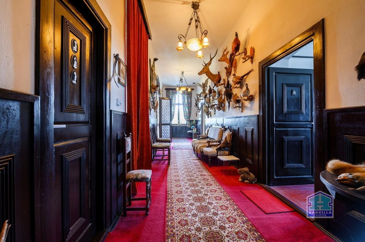 V přízemí je z hlavního vchodu vstup do prostorné chodby, ze které se dostaneme do velkého obývacího pokoje, do kuchyně s kachlovými kamny, linkou s vestavěnou myčkou a el. sporákem. Z kuchyně je vchod do jídelny a přes ní do ložnice. Z chodby se dále dostaneme do koupelny, do technické místnosti, na schodiště do patra a do chodbičky vedoucí k zadnímu vchodu do objektu. U zadního vchodu se nachází zastřešená pergola s krbem. V patře je prostorná chodba, ze které se dostaneme do pokoje pro hosty, do 3 dalších pokojů, do obývacího pokoje s vchodem na terasu a též do koupelny se sprchovým koutem, WC a umyvadlem.