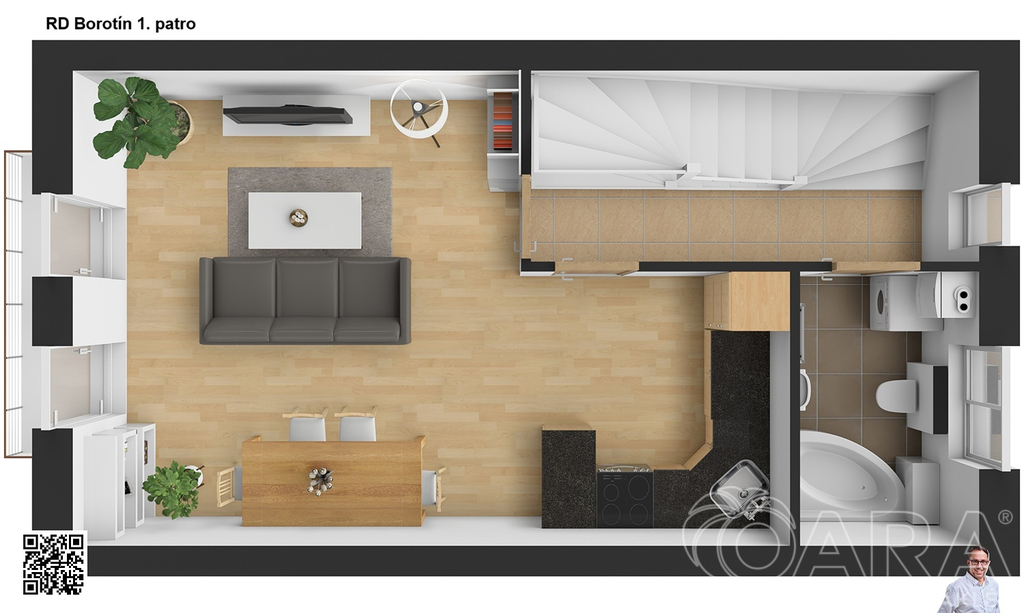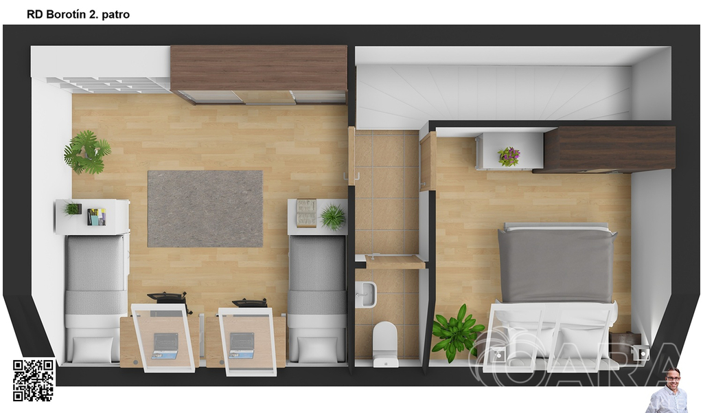 Dispozice prostorného 2+1 přináší praktické a útulné řešení pro jednotlivce, pár či malou rodinu.