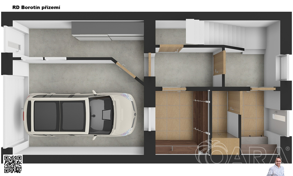 Garáž + parkovací místo před domem, to znamená pohodlné parkování přímo u domu.