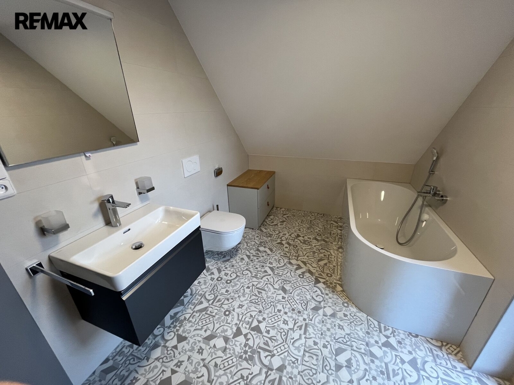 Nabízíme k pronájmu moderní novostavbu rodinného domu s prostornou zahradou v klidné oblasti obce Borová Lada, okres Prachatice, v srdci Šumavy. Tento energeticky úsporný dům dosahuje A třídy energetické náročnosti díky využití tepelného čerpadla vzduch-voda a rekuperace. Topení teplovzdušné se zpětným získáváním tepla. Dům s dispozicemi 5+kk nabízí dvě nadzemní podlaží. V 1. NP. se nachází společný prostor obývacího pokoje s kuchyní na míru a možností umístění jídelního stolu s výhledem do zahradní části a na navazující dřevěnou terasu na kterou je vstup z obývacího pokoje, kde jsou dominantou krbová kamna. Terasa má lamelově elektricky ovládanou střechu s možností náklonu na svit sluníčka. Boční a čelní strany terasy lze také spuštěním venkovních rolovacích lamel uzavřít. Dále se v přízemí nachází jeden samostatný pokoj též s východem na terasu, koupelnu se sprchovým koutem, WC a umyvadlem. Dlažba a obklad koupelny je moderní a nadčasový. Technické zázemí domu (tepelné čerpadlo, akumulační nádrž a vývod a přívod na připojení pračky). Vnitřní dřevěné schody nás zavedou do 2. NP., kde se nachází tři samostatné pokoje, šatna, koupelna s vanou, sprchou a toaletou. Dům napojen na vodovodní a kanalizační řád obce. Kompletně oplocený pozemek s nově založeným trávníkem a upravenou zahradou umožňuje samostatný vjezd a parkování přímo u domu či v zastřešeném přístřešku, za kterým je vyhotoven ještě sklad na náčiní. Po domě rozvedený alarm a připojení k Wi-Fi. Zahrada nabízí prostor k posezení v létě ke grilování a odpočinku. Zastavěná plocha 128 m2. Celková plocha pozemku cca 910 m2. Klidné prostředí šumavské krajiny. Dům je ideální pro rodinu či možné využití jako trvalé bydlení s podnikáním, kde můžete mít sídlo své firmy nebo využívat pouze k rekreačním účelům v každém ročním období. Tato moderní nemovitost kombinuje komfortní bydlení s ohledem na životní prostředí a nabízí ideální domov pro náročné nájemníky. V případě zájmu o prohlídku nás neváhejte kontaktovat. Měsíční nájemné 45.000,- Kč (voda a elektřina zálohy 5.000,-Kč), vratná kauce 45.000,-Kč, provize RK 30.000,-Kč. V případě zájmu o prohlídku nás neváhejte kontaktovat. Pronajímající si vyhrazuje právo vybrat nájemce na základě jím zvolených kritérií.