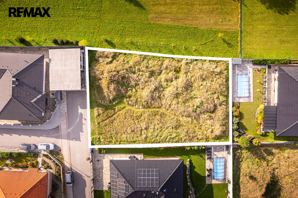 Obdélníkový, ze tří stran oplocený, rovinatý pozemek s rozměry cca 40 x 25 m s celkovou výměrou 1007 m2 je v územním plánu vedený jako plocha bydlení pro objekty rodinných domů s jednou nebo dvěma bytovými jednotkami. Je možná zastavitelnost pozemku do 25% max. dvoupodlažní stavbou s možností využití podkroví, jsou přípustné i ploché střechy. Pro doplňkové stavby, které nejsou spojené s hlavní stavbou a další zpevněné plochy platí zastavitelnost max. 35%. V lokalitě je minimální velikost stavebních pozemků 650 m2, rozdělení na dvě parcely tedy možné není.