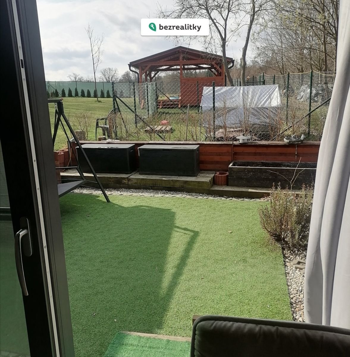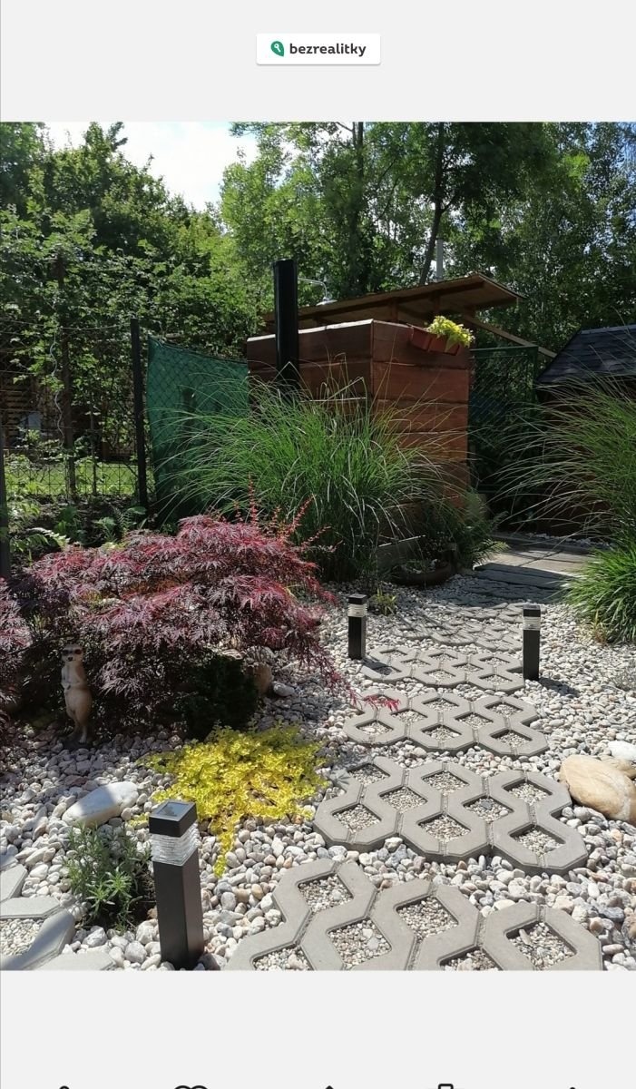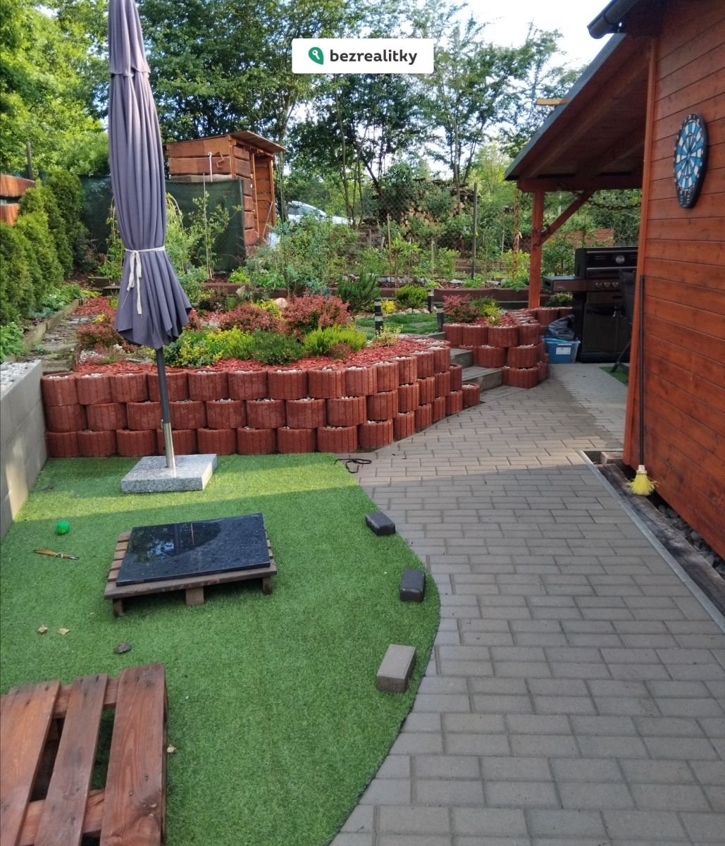 K domu náleží rozlehly pozemek, který je nově oplocený a rozděleny do několika zón. Na dům je napojena pergola 15m2, další pergola 25m2 se nachází poblíž kruhového bazénu. Na zahradě v okolí domu je několik vyvysenych záhonu, 2 zahradní domky, kotec pro psa, dřevníky.