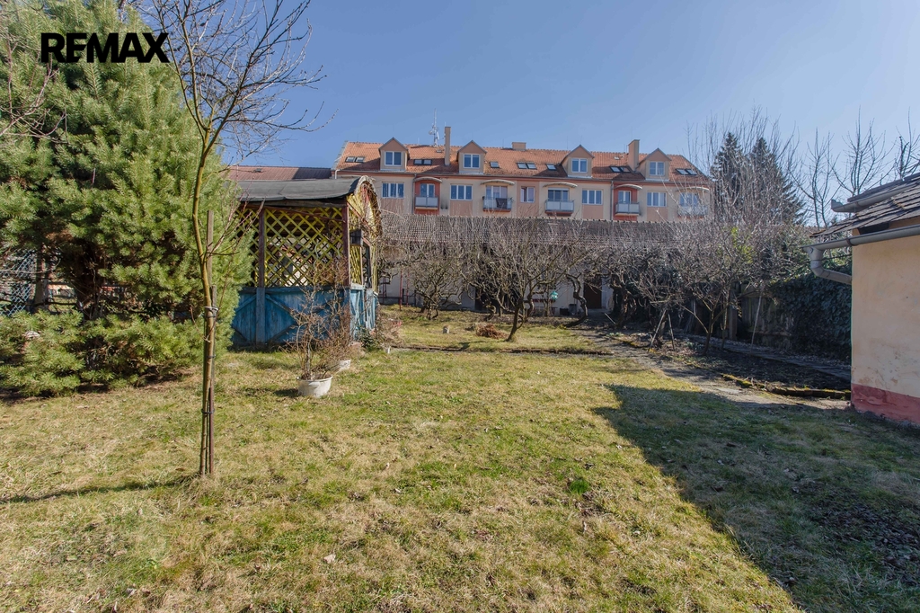 Před domem je předzahrádka 50 m², vzadu na dům navazuje zahrada o výměře cca 200 m².