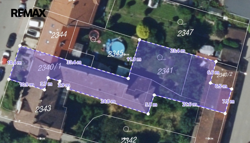 Jedná se o řadový dům, který je určen k rekonstrukci. Původní zděná stavba zabírá plochu asi 230 m², přístavbou se původní dispozice rozšířila o 2 sklady a hospodářské místnosti (málo udržované) v zadním traktu, uliční šíře je 10 m, zastavěná plocha domem a garáží je 270 m², celková plocha pozemku je 729 m². Vnitřní dispozice domu v přízemí je 3+1+veranda, celková podlahová plocha je asi 120 m² (pokoje: 24, 17 a 8 m², kuchyň 13 m², hala 24 m², koupelna 5 m²), k dispozici je malý sklep.