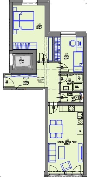 | Dispozice/podlahová plocha: | 3+kk/65 m² |