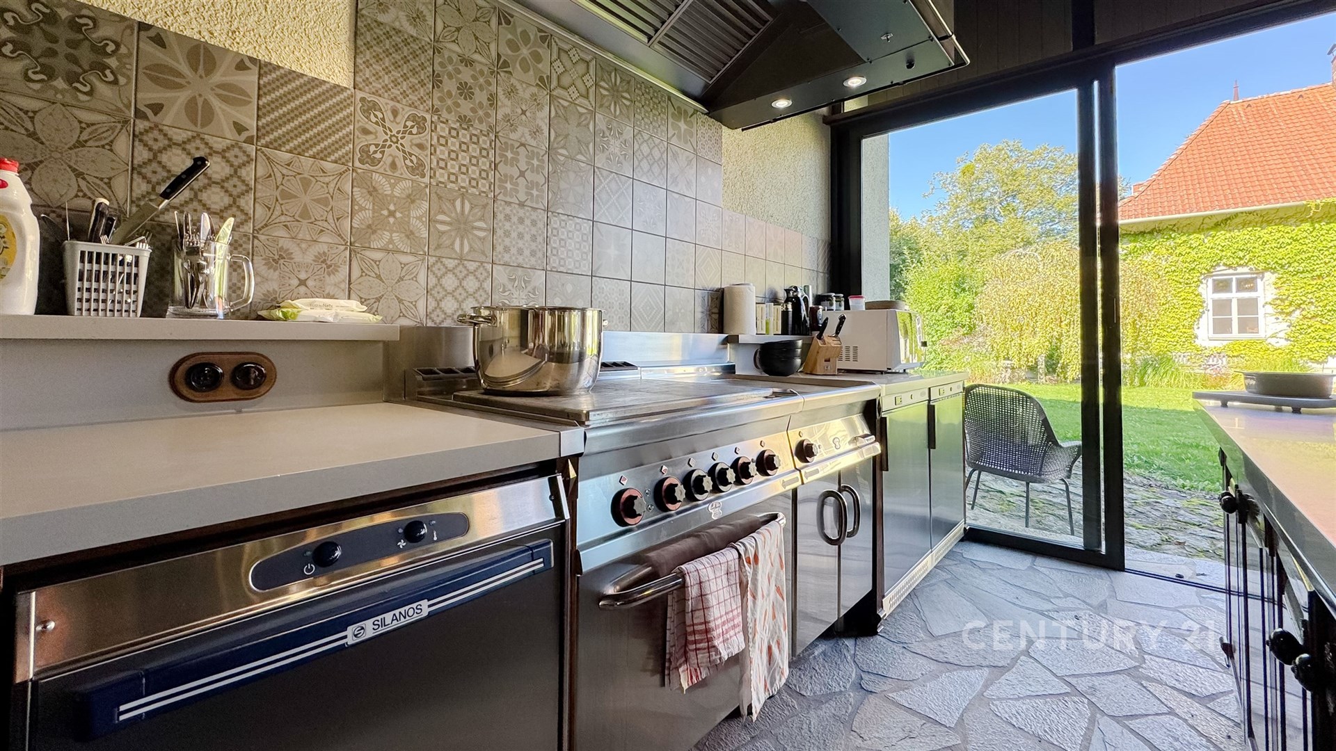 x Sál s profesionálním gastro vybavením na pořádání společenských akcí propojený francouzskými posuvnými okny s vnitřní zahradou.