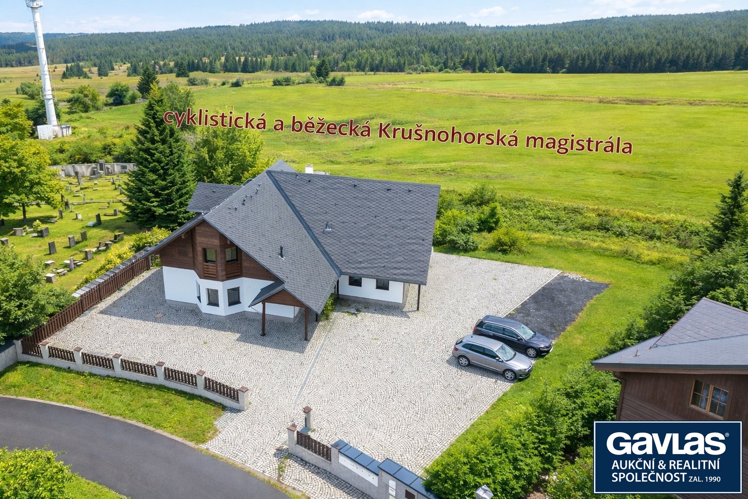 Ráj zimních sportů, procházek a cyklistiky přímo za dveřmi: pár metrů od domu naběhnete na běžkařskou Krušnohorskou magistrálu (120 km upravovaných tras), když není sníh najedete na stejném místě na cyklostezku, nebo se půjdete projít malebnou stezkou Božídarského rašeliniště. Celoročně můžete vzít své ratolesti na dobrodružnou Ježíškovu cestu. To vše máte pár kroků od domu s nádherným výhledem.