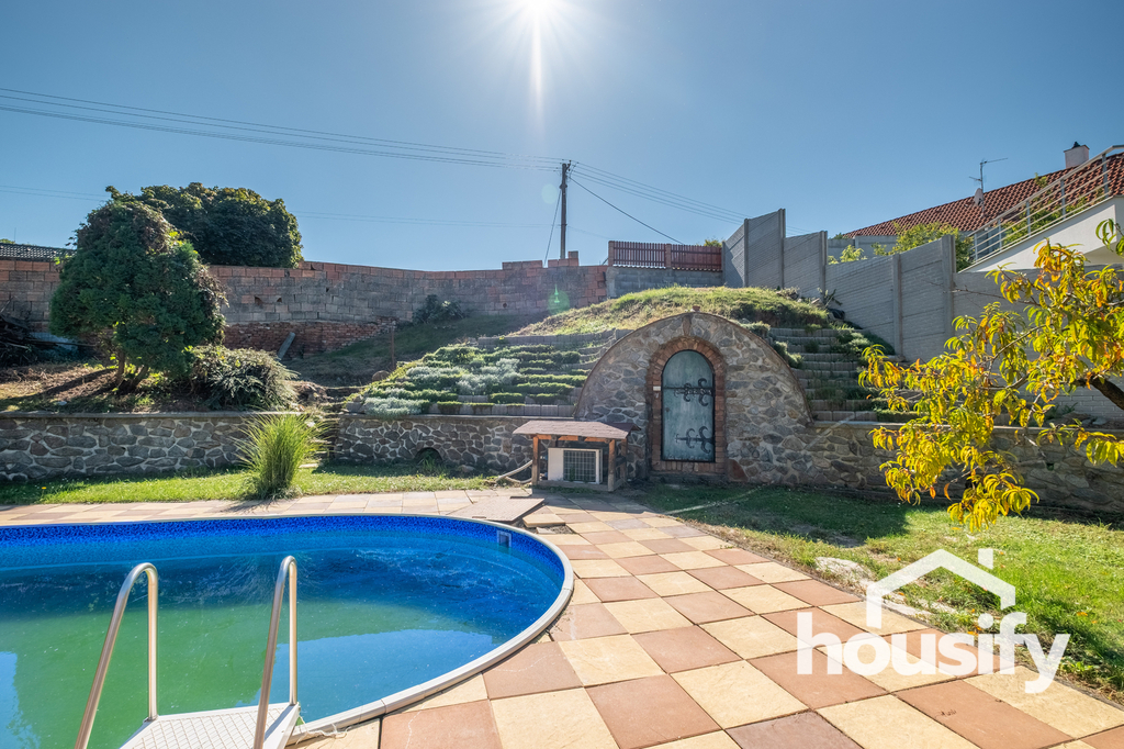 Součástí nemovitosti je vinný sklep, který nadchne nejen milovníky dobrého vína, ale i ty, kteří potřebují prostor k uskladnění. K dispozici je také garáž. Pozemek o velikosti 953 m² vám poskytne dostatek prostoru na zahradničení, relaxaci i další možné využití. Zahrada nabízí také zapuštěný bazén pro letní dny.