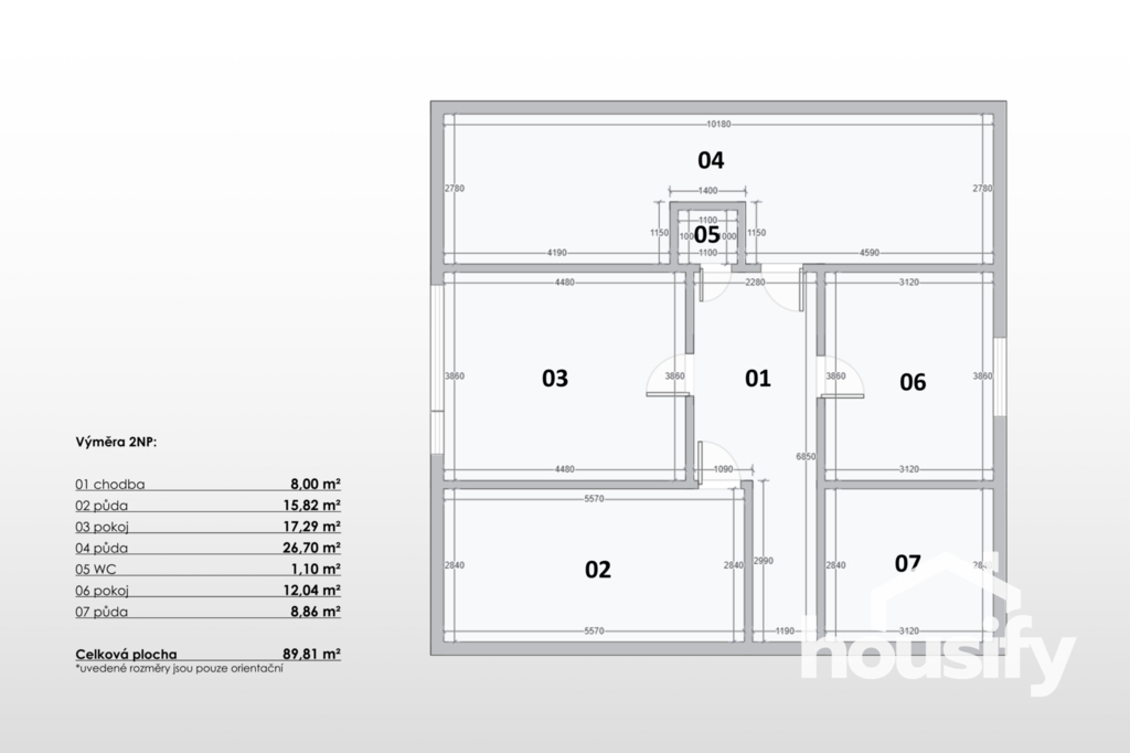 Přízemí domu zahrnuje prostornou halu, dva pokoje, obývací pokoj, samostatnou prostornou kuchyni se vstupem na terasu, koupelnu s rohovou vanou a samostatnou toaletu. Z haly se schodištěm dostanete do prvního patra, kde najdete další dva pokoje, toaletu a vstup do dvou půdních prostor.