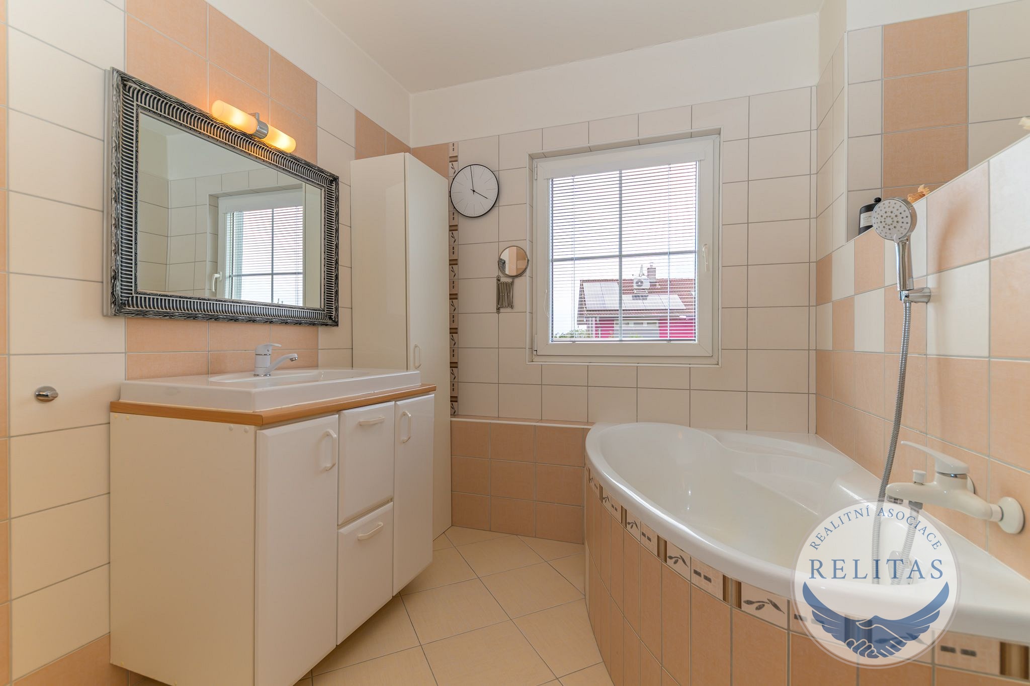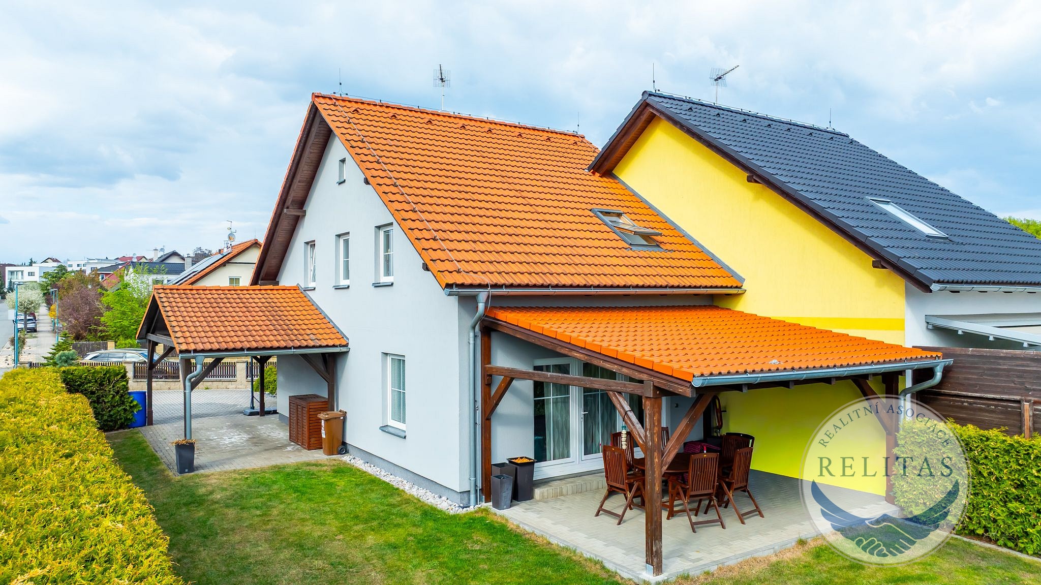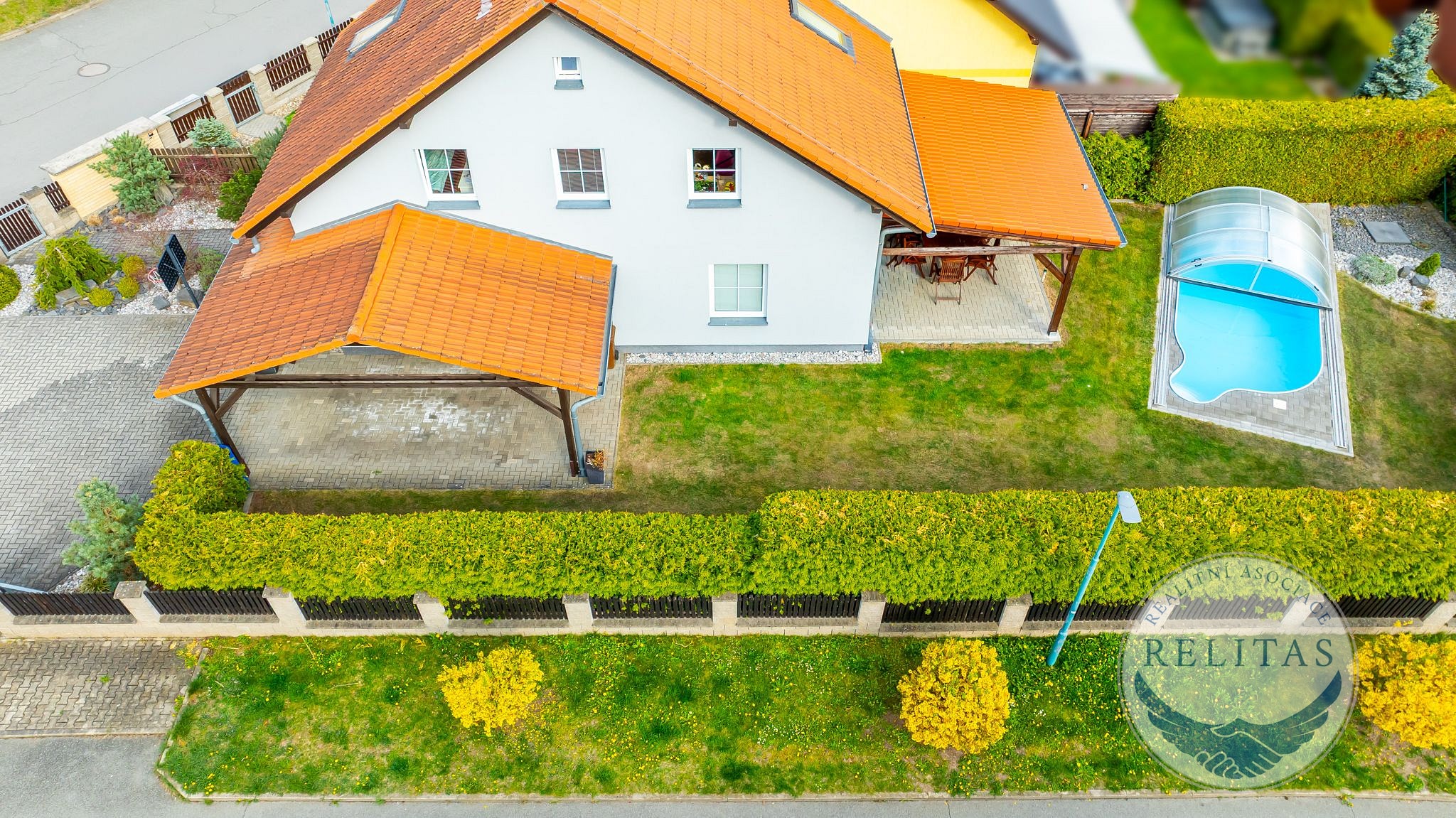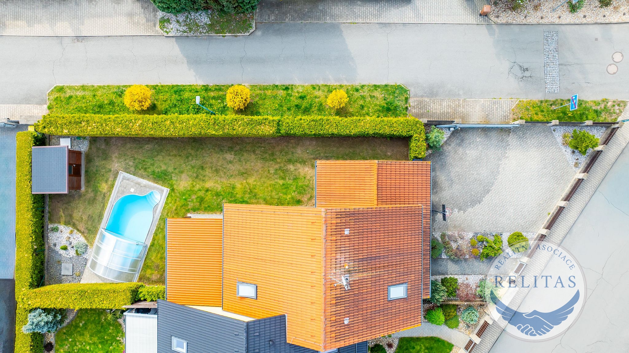 Velkým benefitem je udržovaná zahrada vybavená automatickým zavlažovacím systémem, bazénem a zahradním domkem. Parkování je zajištěno přímo na pozemku pro dva vozy, z toho jedno kryté stání.