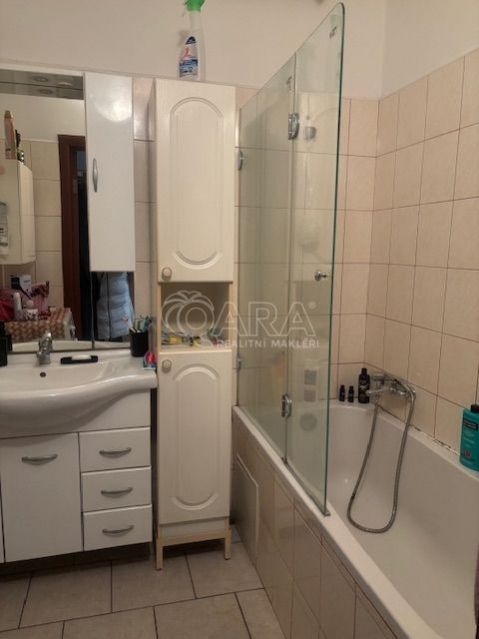 Byt prošel kompletní rekonstrukci. V koupelně vana se sprchovou zástěnou, pračkou, topným žebříkem a umyvadlem se skříňkou. Samostatná toaleta, kde je umístěn bojler na teplou vodu. K bytu náleží 2 sklepy o rozloze 10m2.