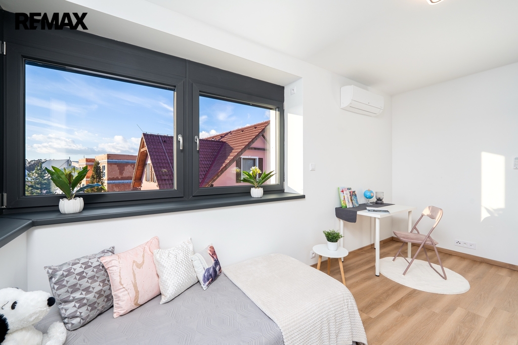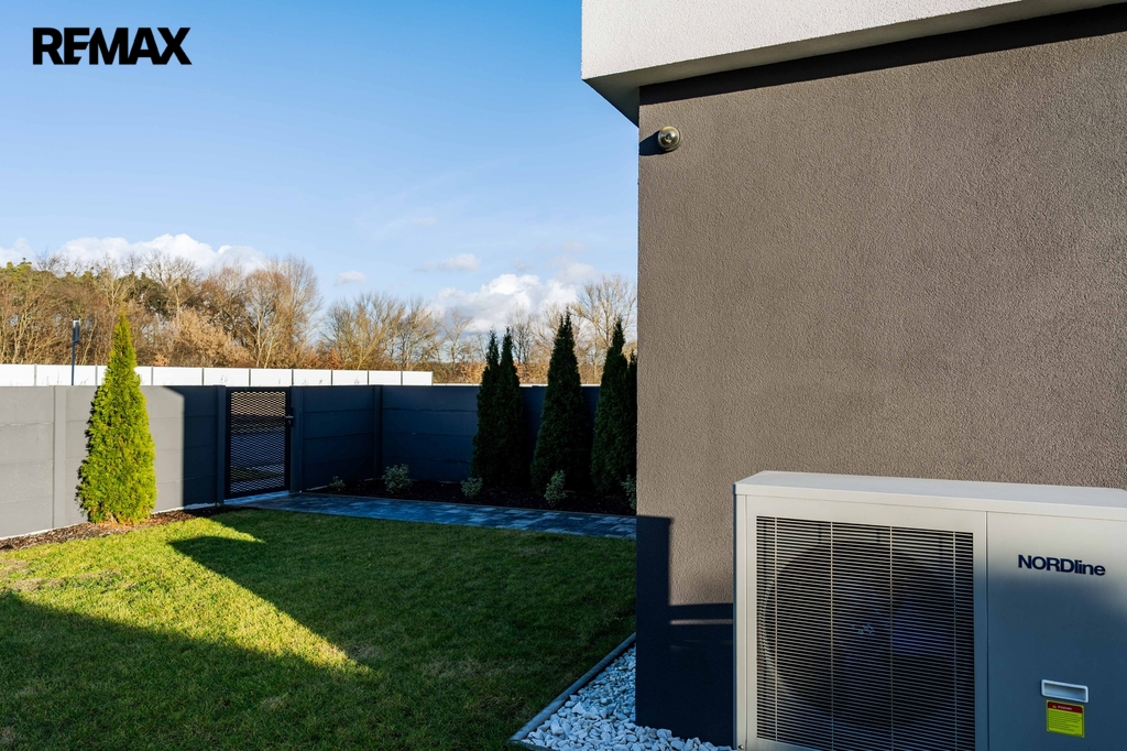O komfort a příjemné klima po celý rok se stará podlahové vytápění v kombinaci s tepelným čerpadlem a klimatizace ve všech pokojích zajišťuje ideální teplotu i během horkých letních dnů.