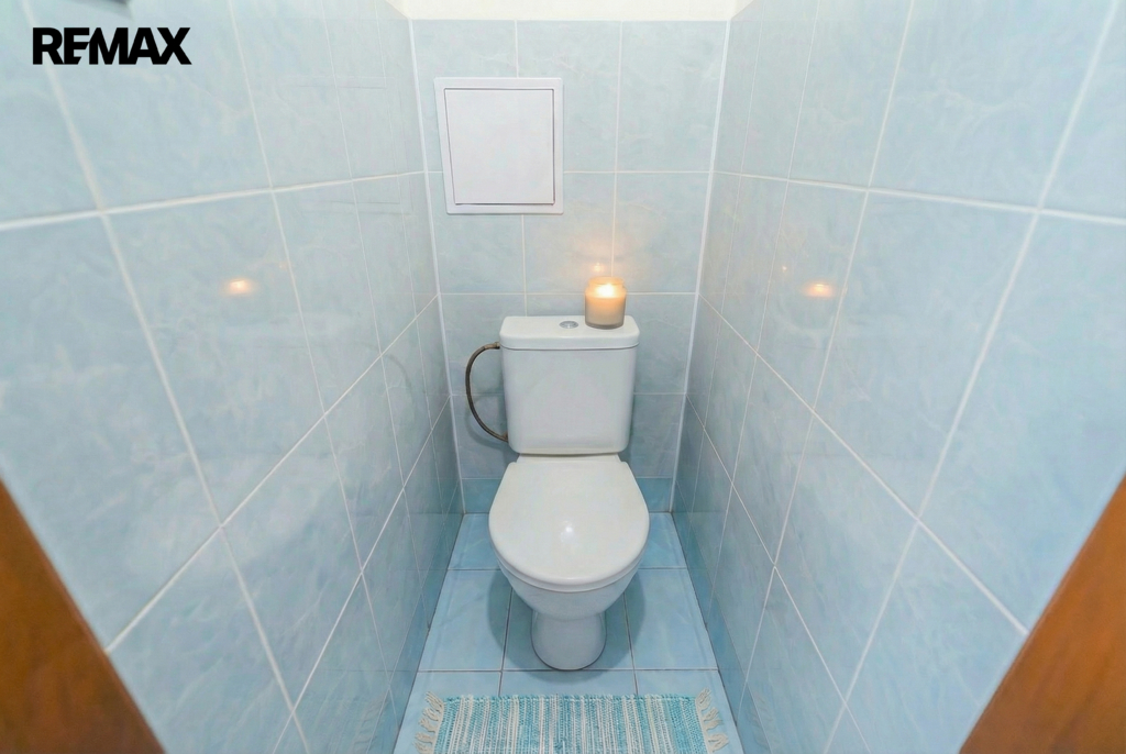 Koupelna a WC: Praktické řešení se samostatnou koupelnou a samostatným WC.