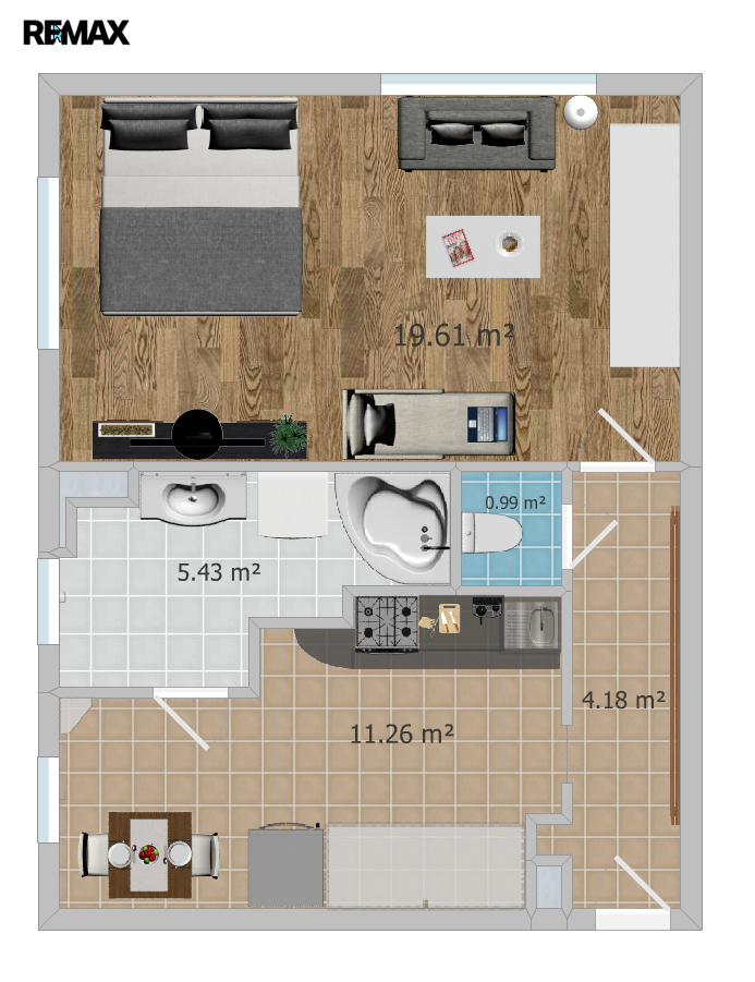 - Dispozice bytu: 1+1