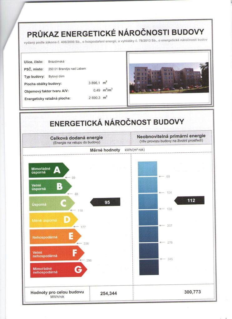 - Ukazatel energetické náročnosti budovy: 95 kWh/m²