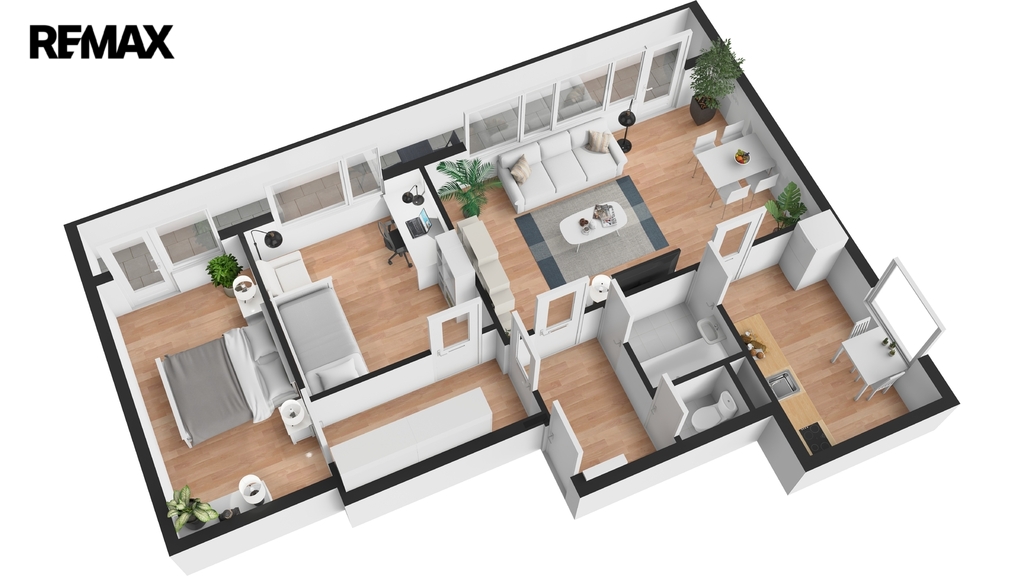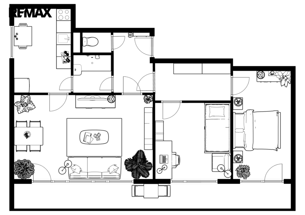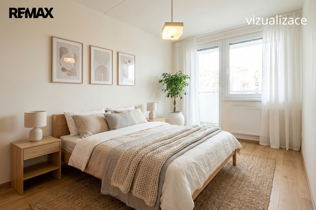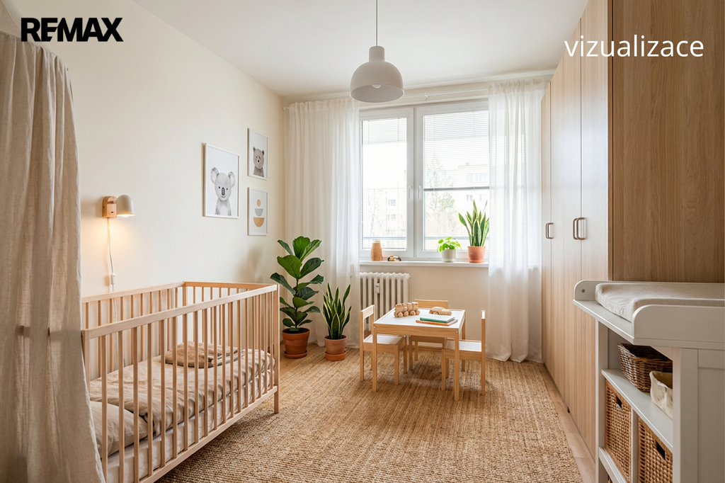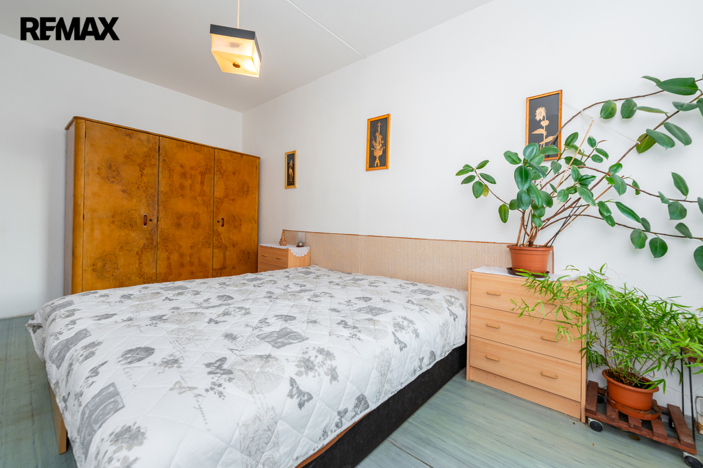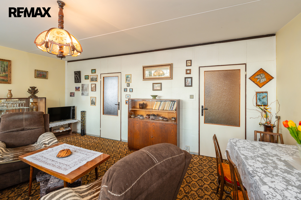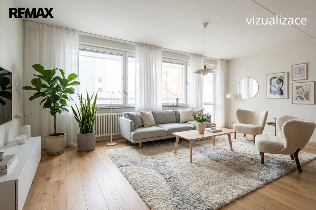 Jednotka je v původním, udržovaném stavu a je obývána prvními majiteli až do současnosti. Byt se nabízí kompletně vybavený starším nábytkem, což umožňuje okamžité užívání nebo postupnou rekonstrukci dle vlastních představ. Velká okna v každé místnosti zajišťují dostatek světla a podtrhují vzdušnost celého prostoru. Pro lepší orientaci a představu jsme nechali zpracovat půdorys a vizualizace možného budoucího stavu interiéru.