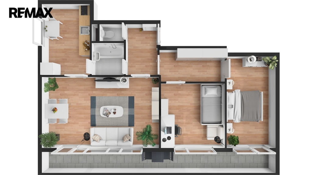 K bytu náleží dvě zasklené lodžie o celkové ploše téměř 14 m² se západní orientací, přičemž jedna je přístupná z obývacího pokoje a druhá z ložnice. Lodžie poskytují příjemný venkovní prostor s výhledem do okolí a díky zasklení je lze využívat po většinu roku jako příjemnou relaxační zónu.