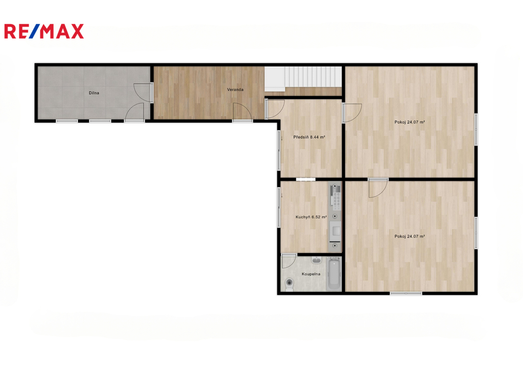 Přízemí: dispozice 2+1, koupelna, samostatné WC