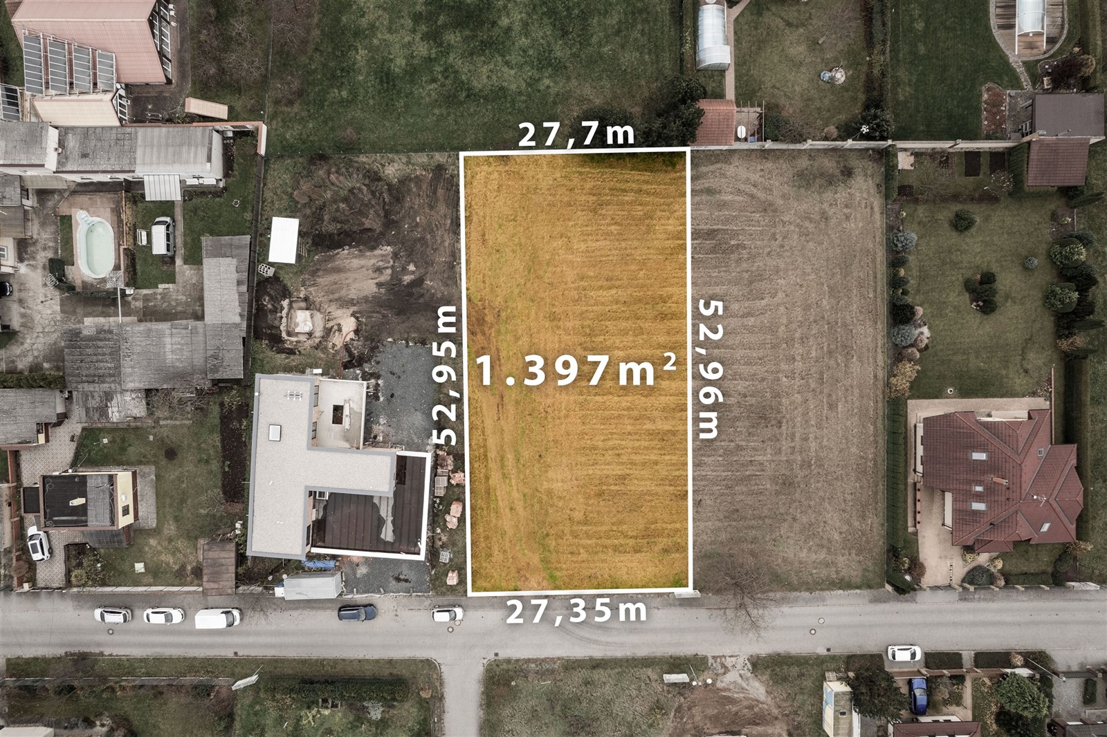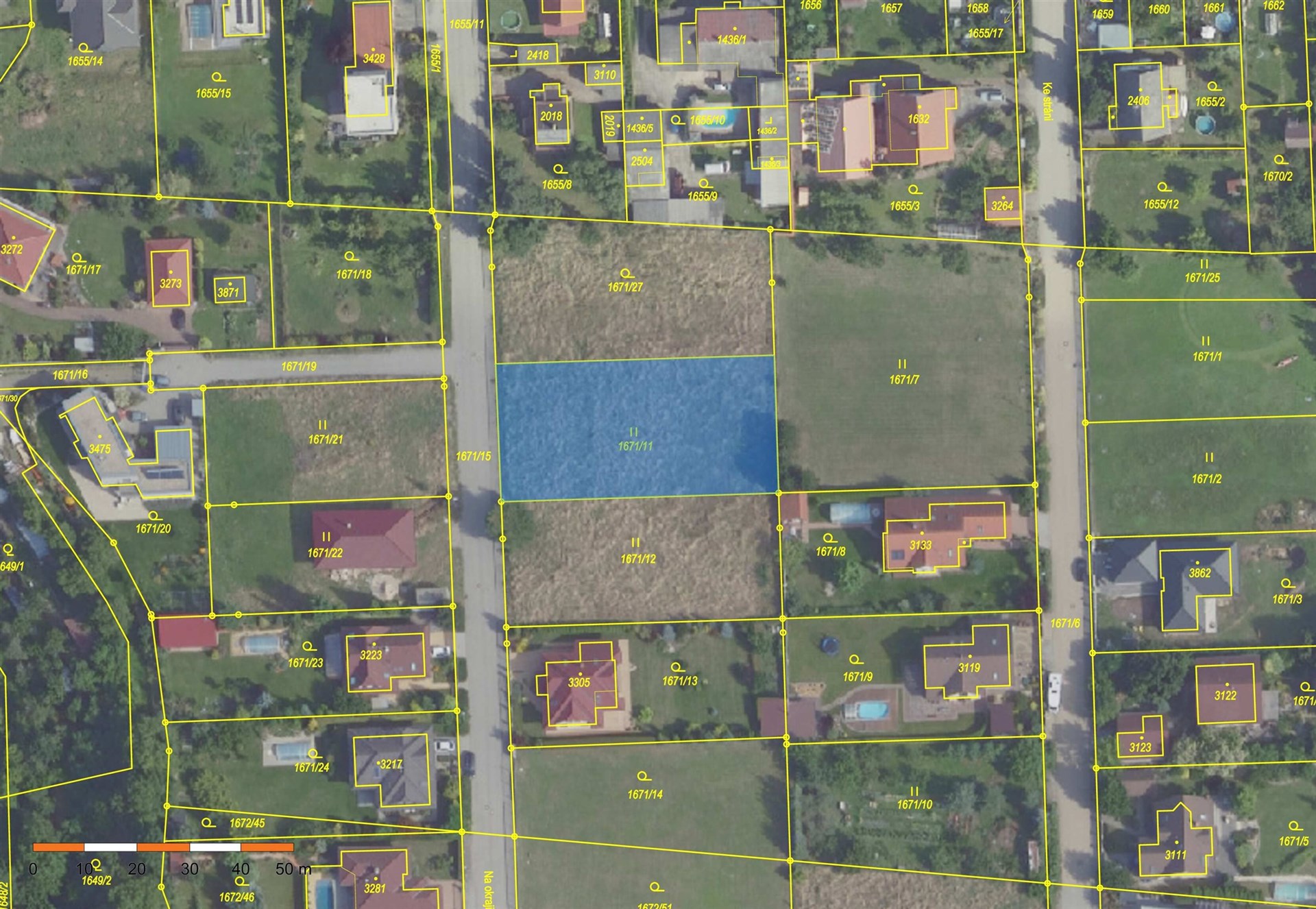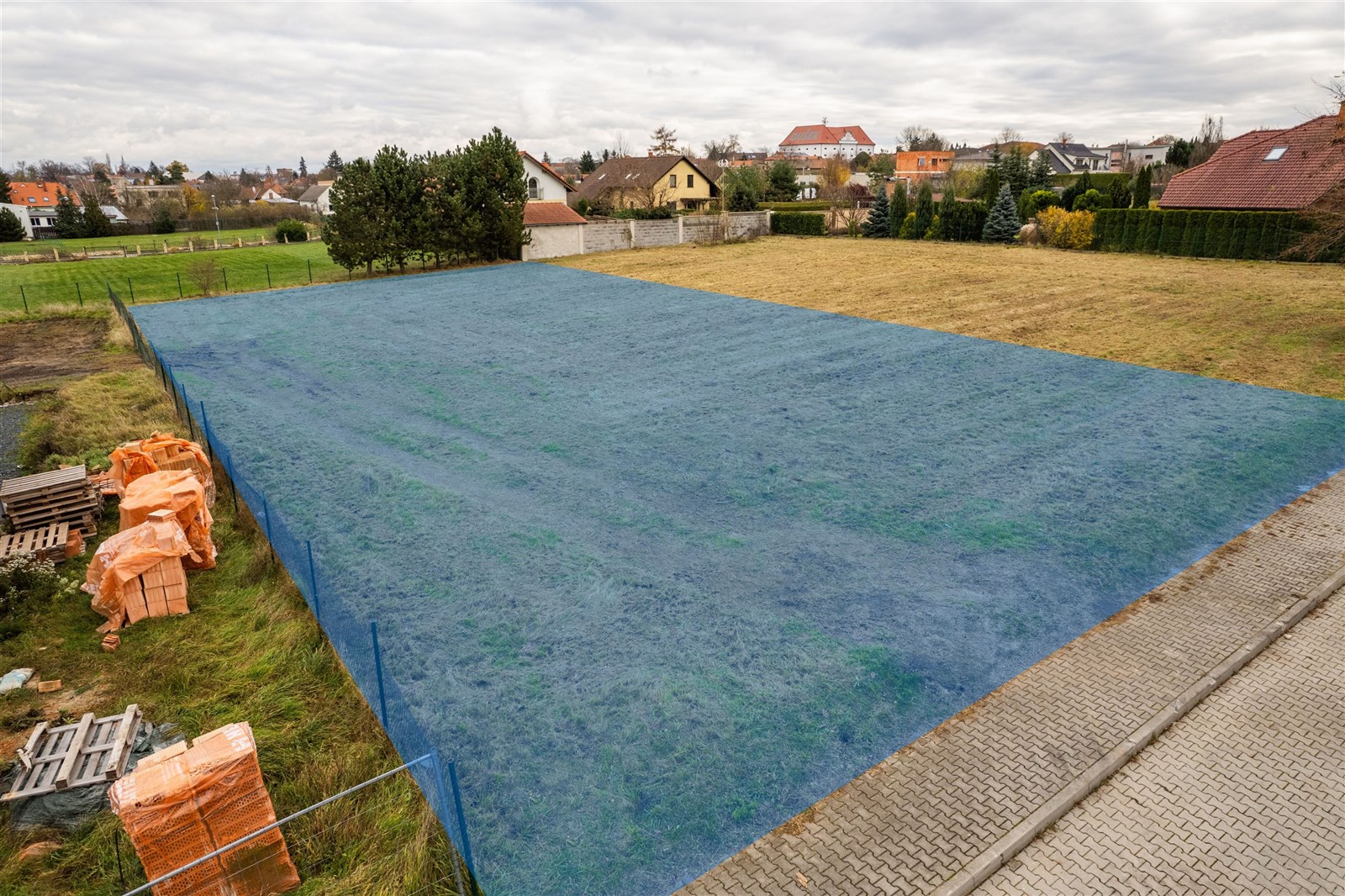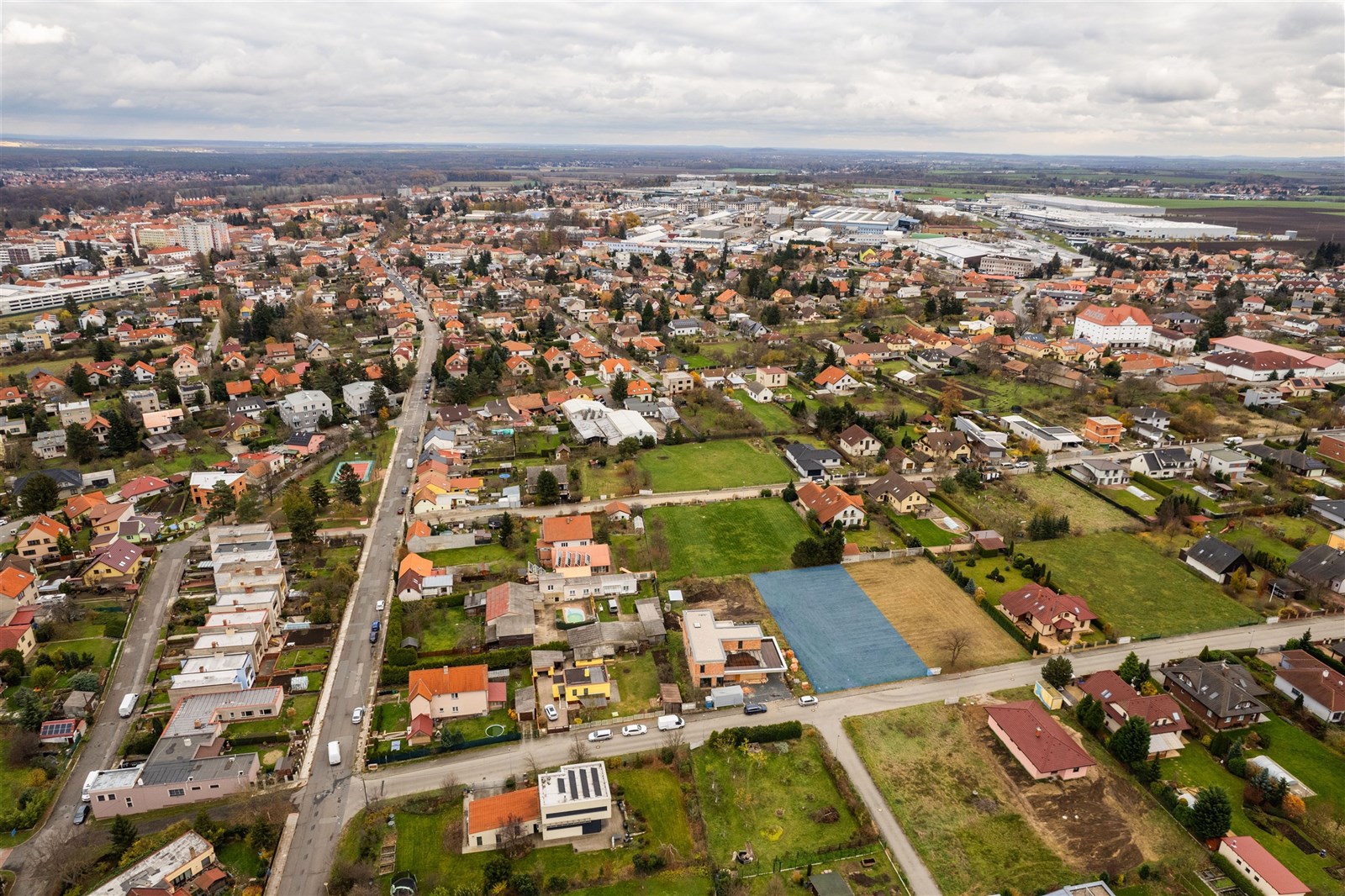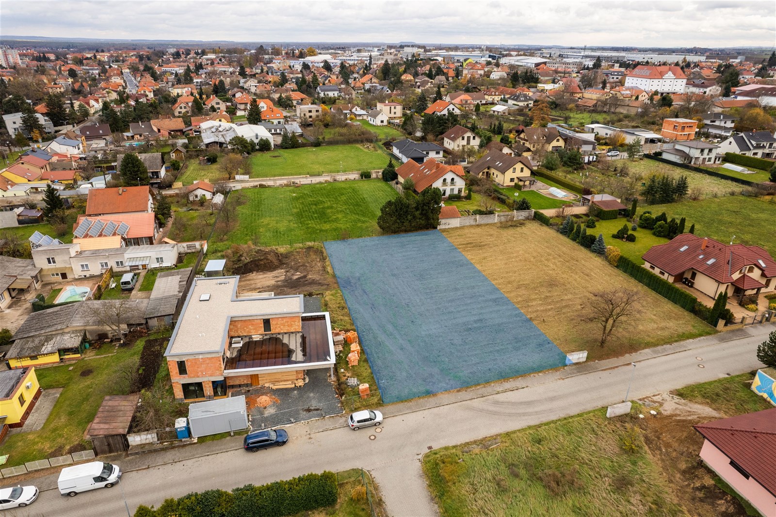 Dle územního plánu je pozemek zařazen do obytné zóny BI, což umožňuje výstavbu rodinného domu nebo domu se dvěma bytovými jednotkami. Zastavitelnost pozemku je stanovena na 35 %. Přístupová komunikace je vybudována ze zámkové dlažby včetně chodníků, které přiléhají přímo k hranici pozemku.