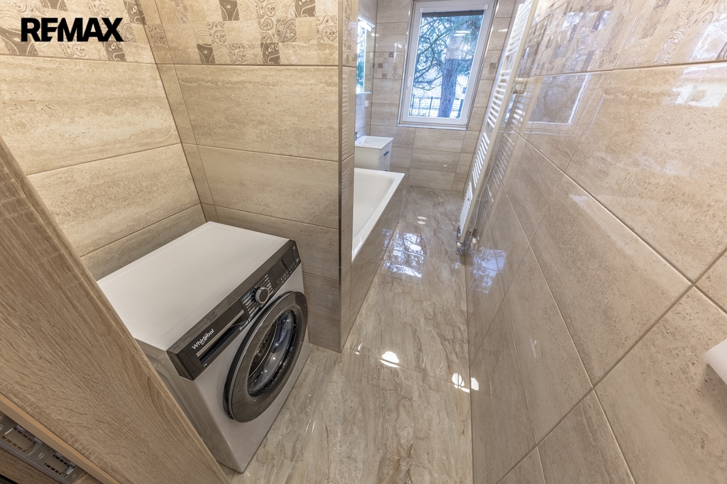 nová pračka v moderní koupelně