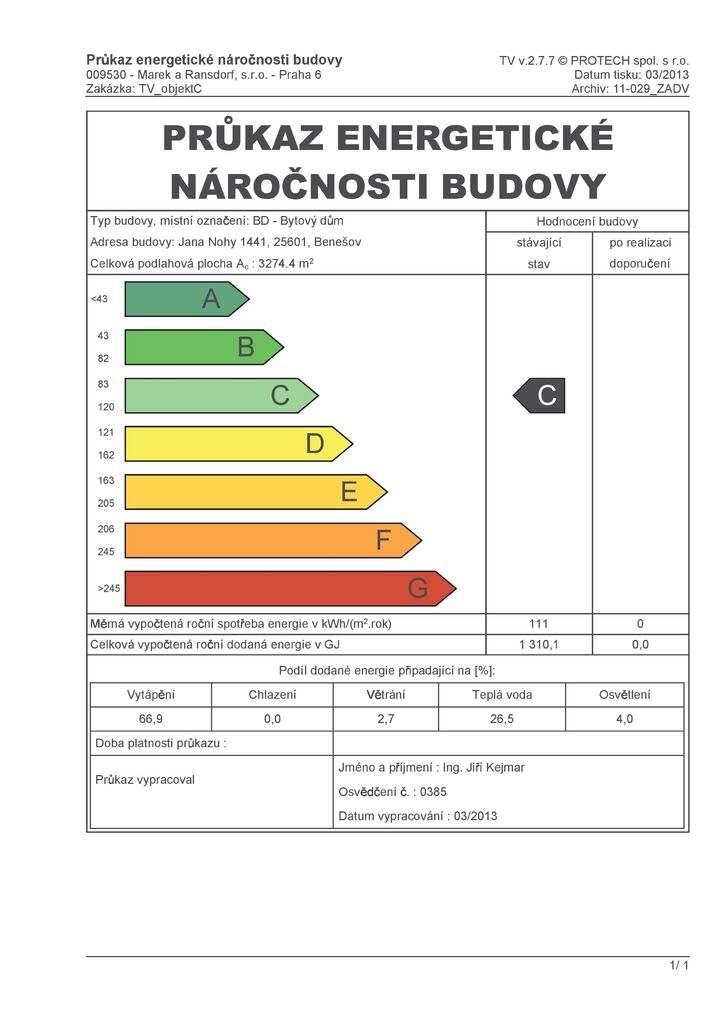 - Ukazatel energetické náročnosti budovy: 111 kWh/m²