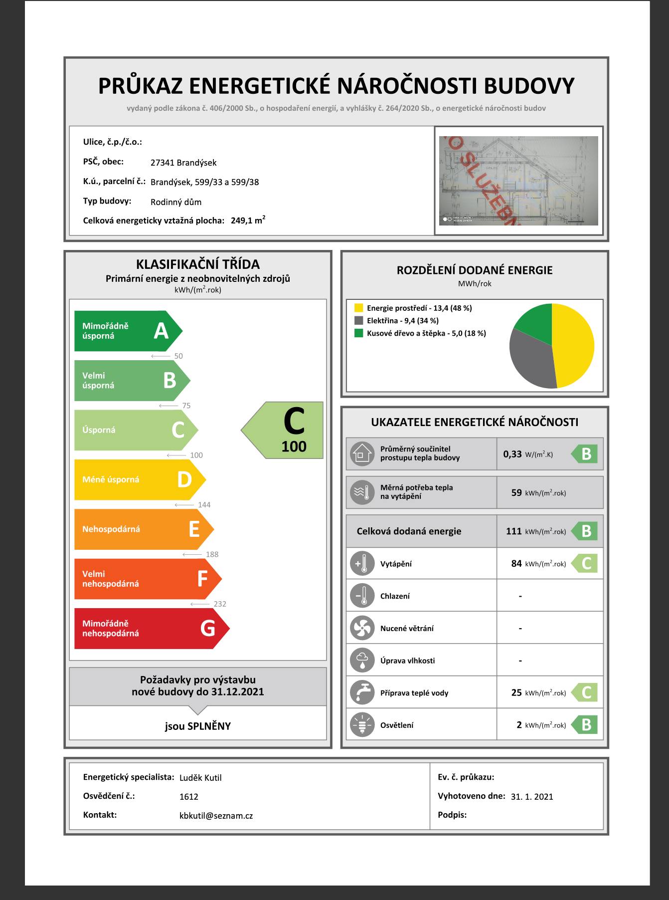 - Energetická náročnost budovy: C - Vyhovující