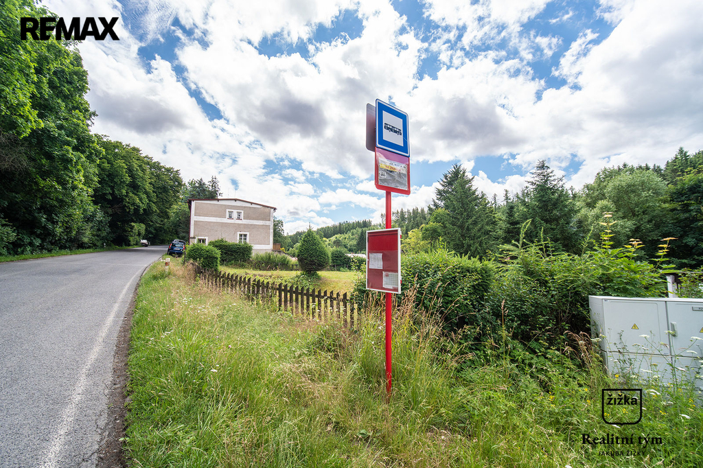 Příjezd na pozemek zajištěn z obslužné cesty podél lesa, kterou využívají ostatní uživatele okolních rekreačních chat - cesta není vhodná pro vjezd těžké techniky.