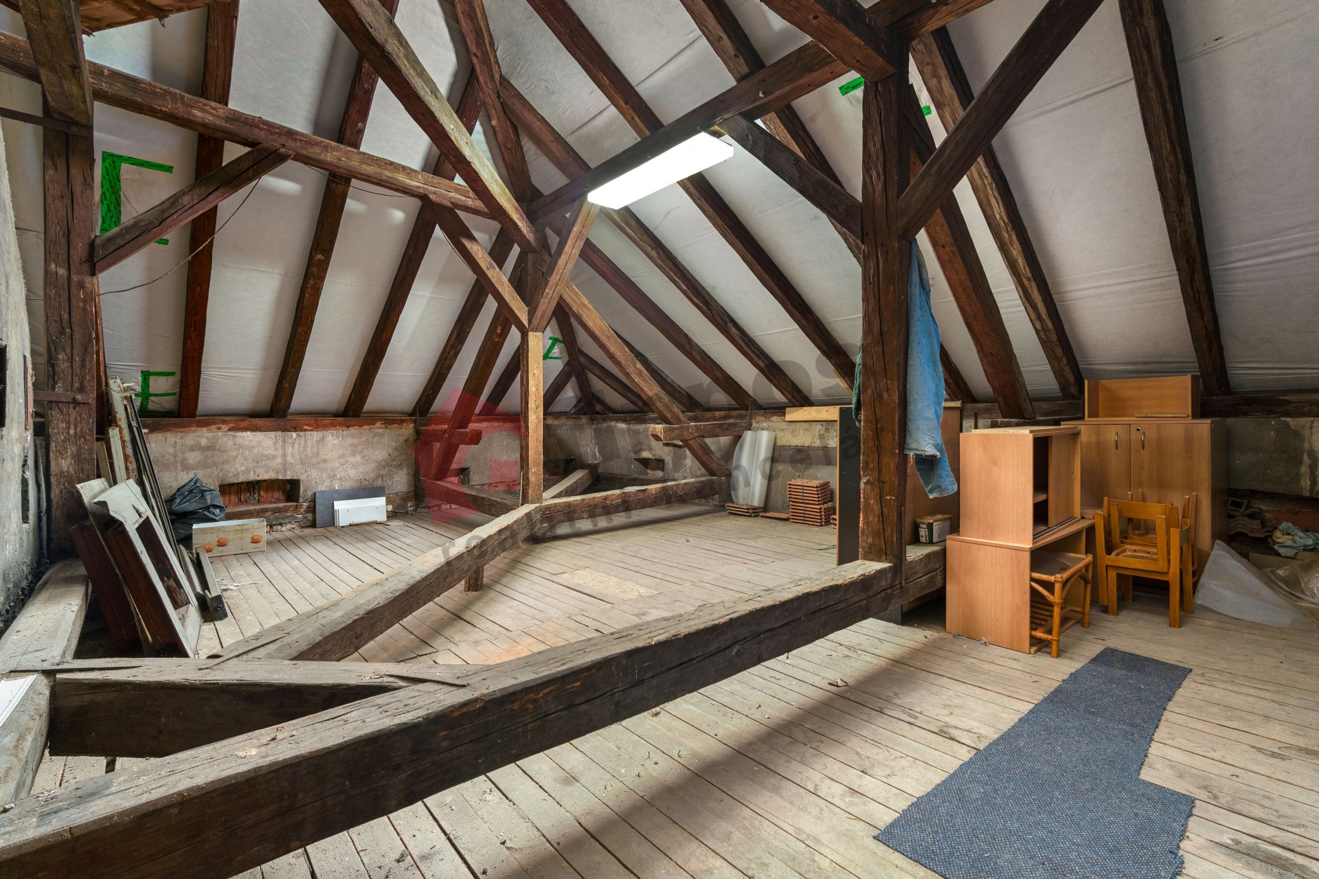 Dům prošel dílčími rekonstrukcemi (poslední změna užívání z roku 2023), budova plní požadavky protipožární ochrany vč. hydrantu, má potřebné revize (plynový kotel, komíny), opravenou střechu (2019), podlahové topení.