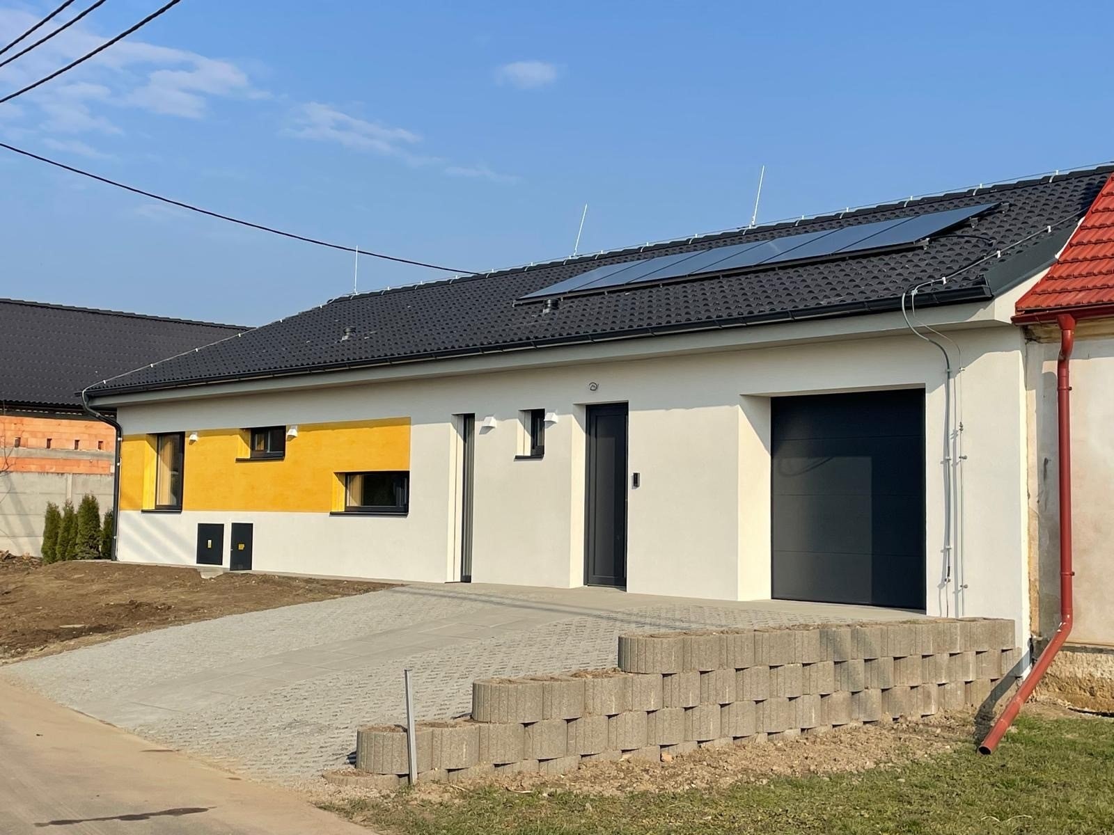Jedná se o polorohový dům v klidné ulici s výhledem na jihozápad, který je právě dokončen a na jaře 2026 bude zkolaudován. K dispozici je prostorná garáž pro 1 vůz a dále 2 parkovací místa před garáží. Dům má velmi promyšlenou a praktickou dispozici s velmi citlivě vybranými kvalitními materiály a vkusně zvolenými barvami podlah, dveří, oken a drobných zařizovacích předmětů. Tento dům vyhovuje moderním standardům dnešního rodinného bydlení.